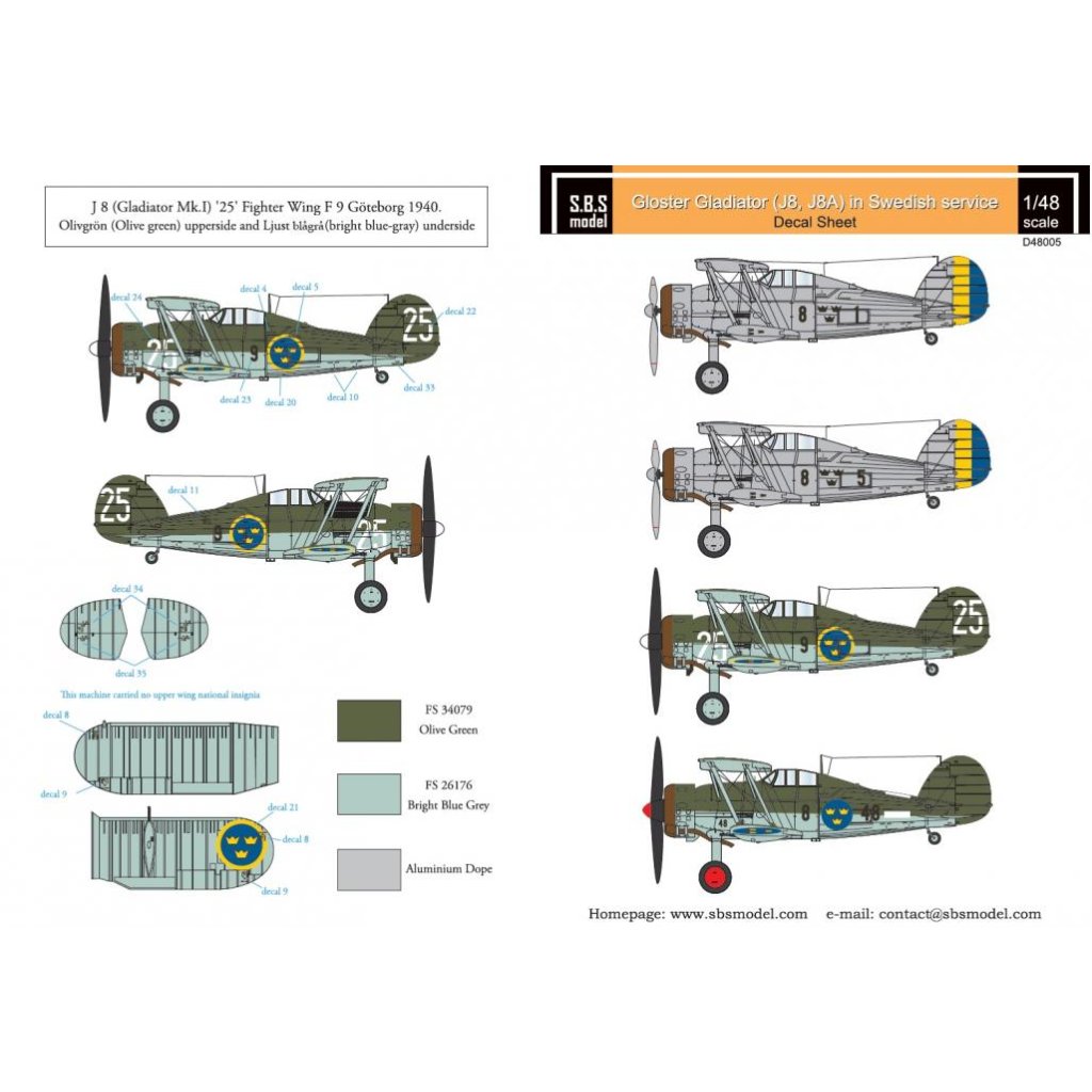 1/48 Gloster Gladiator in Swedish service VOL.I - Decals for Roden/Merit