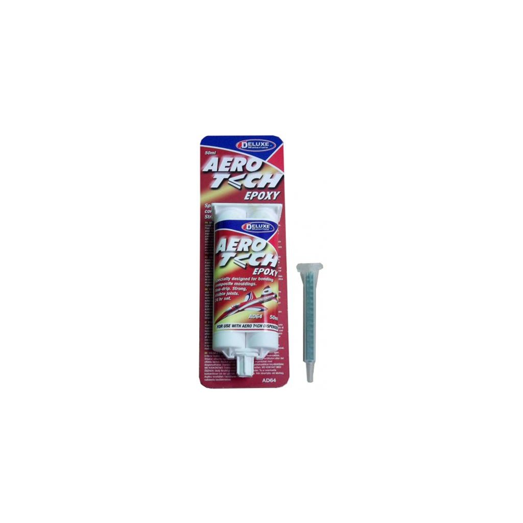 AeroTech epoxidové 2-složkové lepidlo 50ml 24hod. Vyplňuje mezery a vytváří nejvyšší možnou pevnost spoje. Ideální pro formy držáky motorů a podvozků, držáky serv a přepážky. Speciálně navrženo pro lepení kompozitních lišt. Injekční stříkačka dávkuje epoxidovou pryskyřici na stejné části. Dobře lepí epoxidový laminát, uhlíková vlákna, slitiny hliníku, měkké i tvrdé dřevo atd. Po vytvrzení je flexibilní.