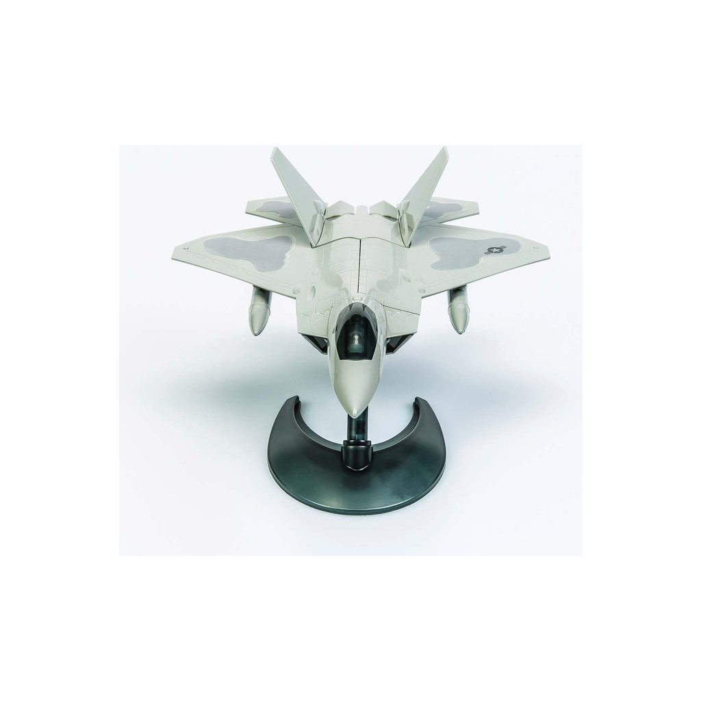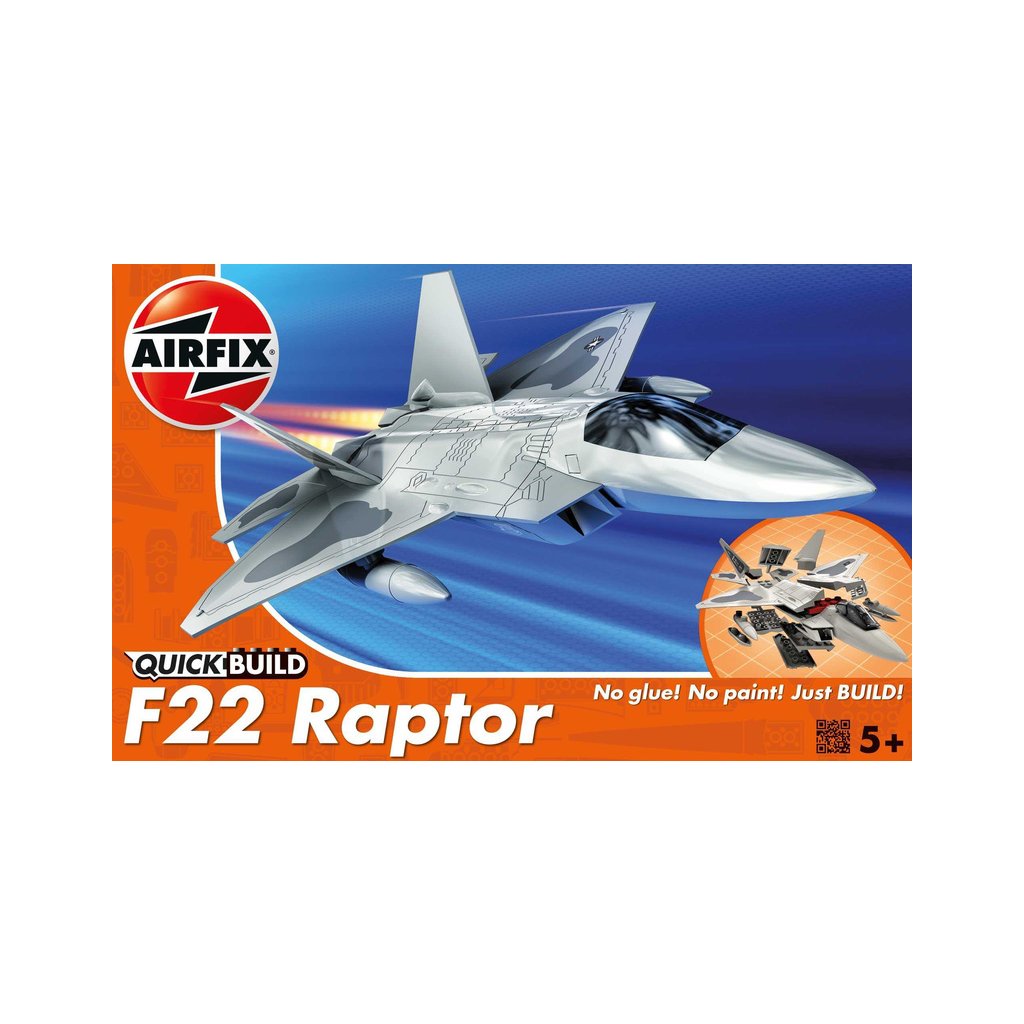Plastikový model Airfix Quick Build J6005 – letadlo Lockheed Martin Raptor. Stavebnice obsahuje 27 dílků, rozpětí křídel 152 mm, obtížnost 1.