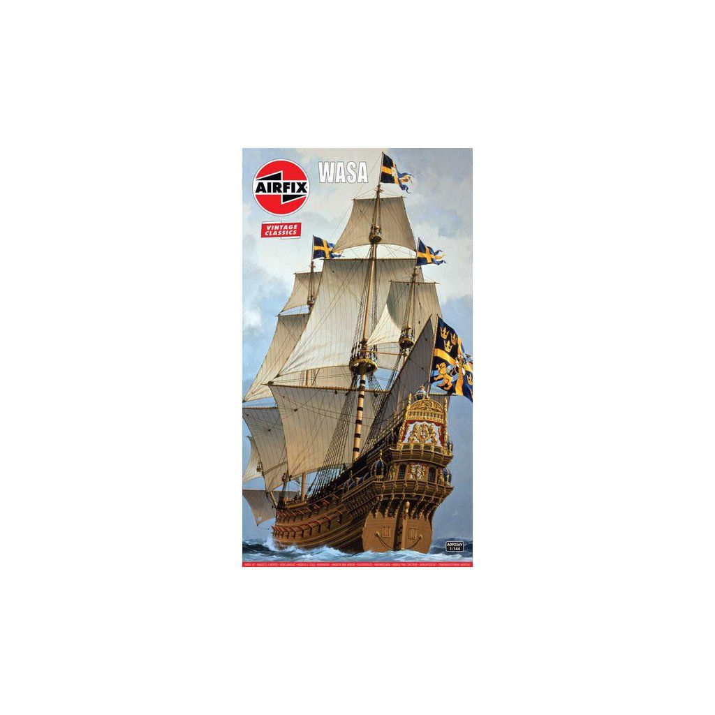Plastikový model Airfix A09256V - loď Vasa v měřítku 1:144 ke slepení. Stavebnice obsahuje 229 dílků, délka 486 mm, obtížnost 4.