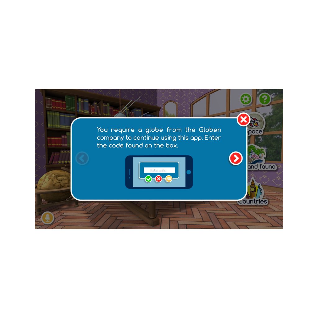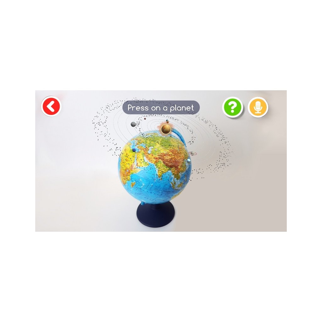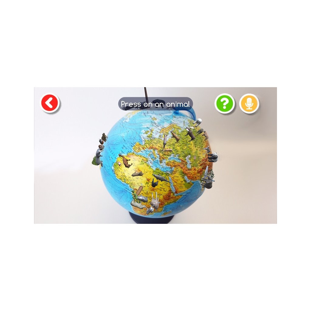 Jazyk aplikace je anglicky, německy, francouzsky, italsky, polsky, dánsky, finsky, rusky a ukrajinsky. Před spojením s glóbusem je nutné zadat heslo na obalu krabice. Pro načtení zeměkoule do aplikace držte telefon namířený na Evropu ze vzdálenosti 30-40 cm.