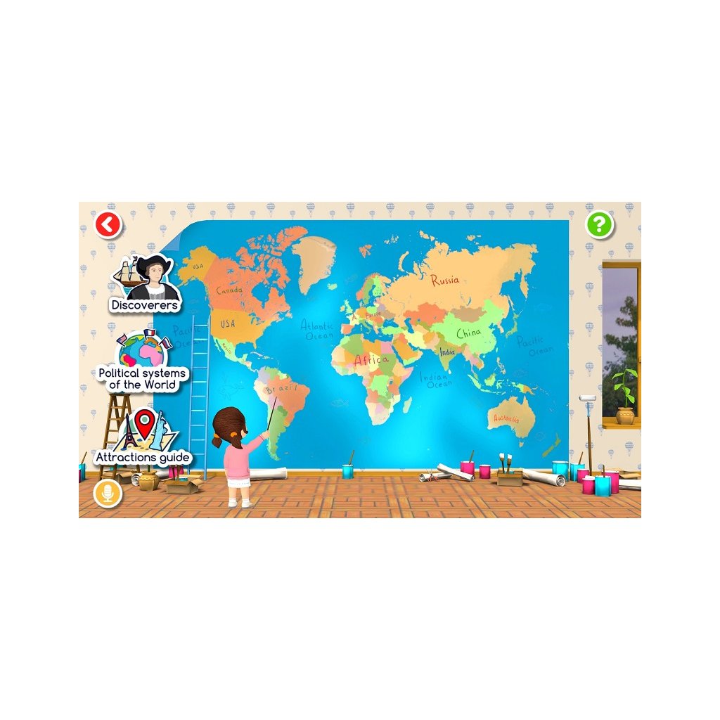 V přehledné grafické aplikaci máte na výběr z 9 témat: fauna a flóra, vesmírné střediska, sluneční soustava, mořský svět, politický systém, pamětihodnosti, přírodní monumenty, vesmír, objevitelé. Témata se zobrazí na glóbusu a po rozkliknutí například zvířete se zobrazí název a 3D model. K dispozici je také hlasový komentář.