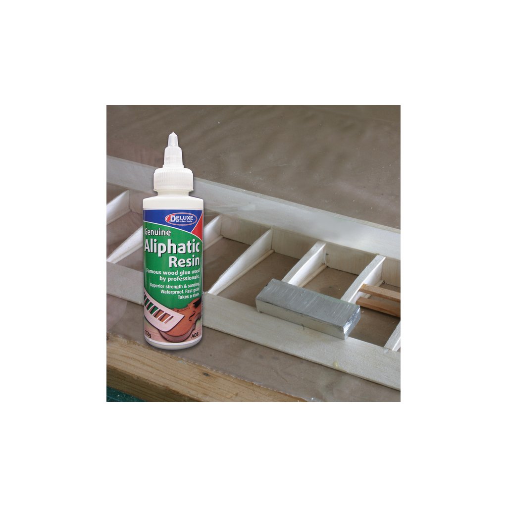 Alifatické "žluté" lepidlo je ideální pro lepení dřevěných stavebnic. Obsahuje resinový prášek. Lepidlo lze po zaschnutí snadno brousit. Díky svému složení dochází k minimálním deformacím balsy. Je odolné vůči vibracím. Vhodné k lepení všech porézních materiálů.