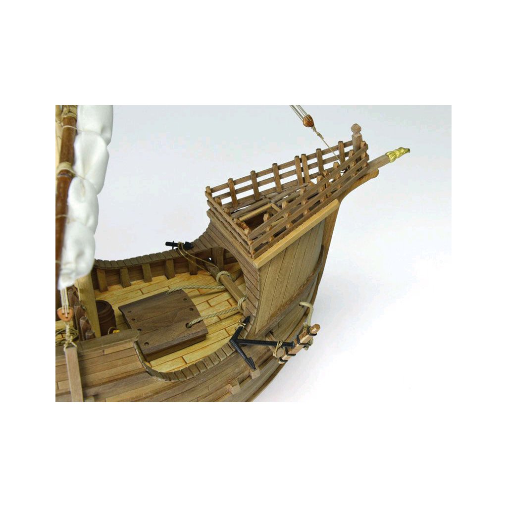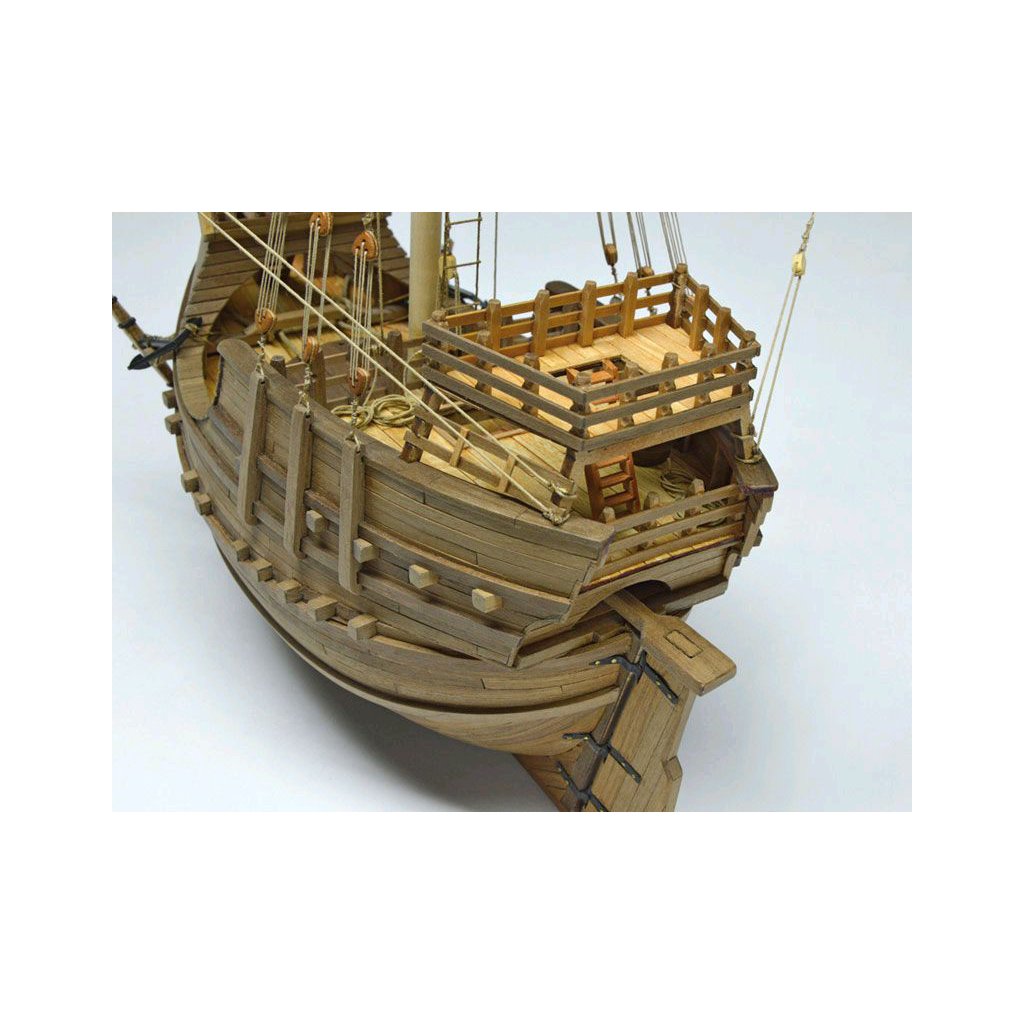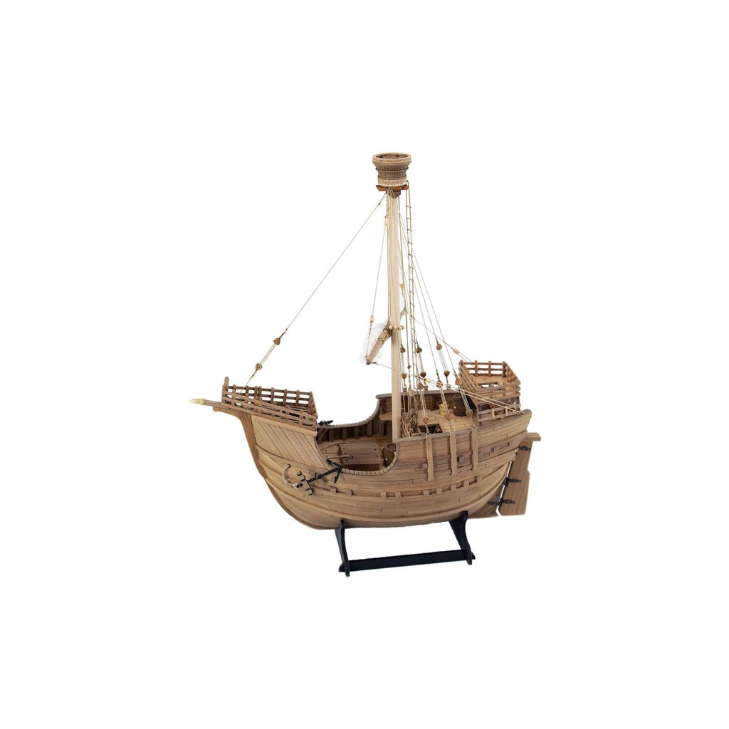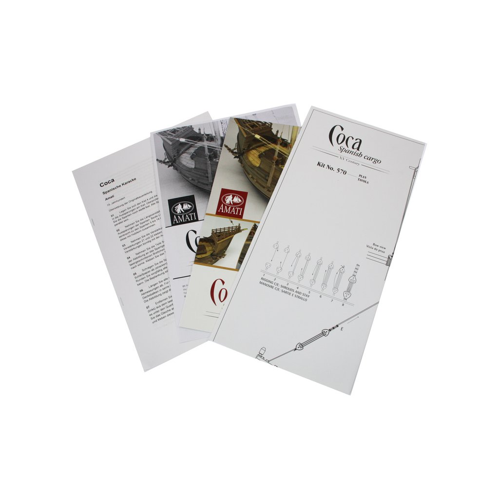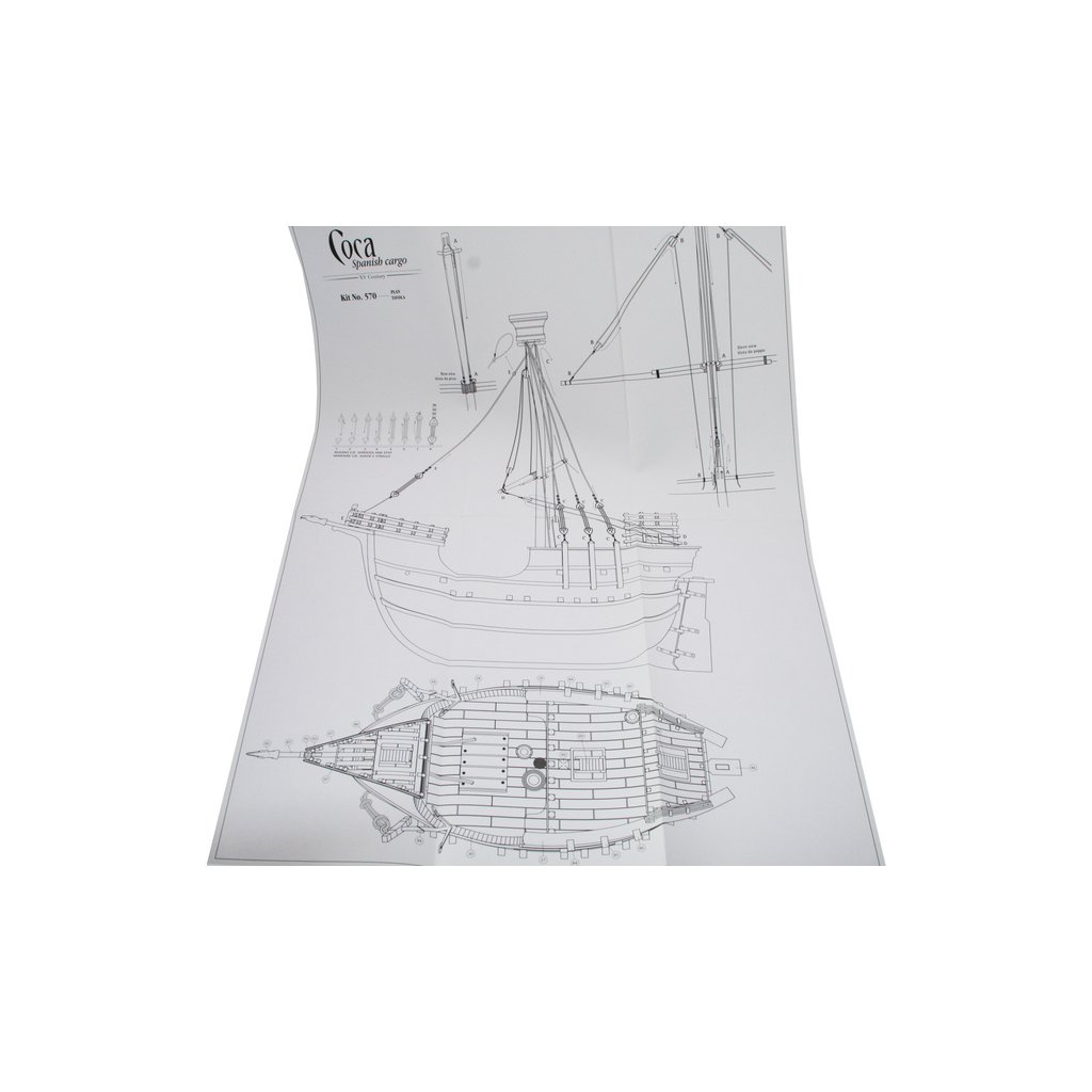 Stavebnice statické makety lodi, AMATI Coca - Karacke 15. století 1:60 kit. Byly používány v 15. století jako obchodní lodě. Typickým znakem byly dvě nástavby, ze kterých se posádky mohly bránit proti pirátským útokům. Z vyhlídky na vrcholku stožáru se pozorovalo okolního moře. Dřevěné díly jako kýl a obšívka jsou řezány laserem, obsahuje plachty, příslušenství a plány.