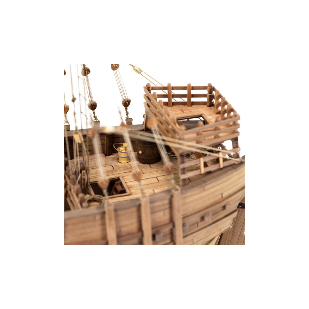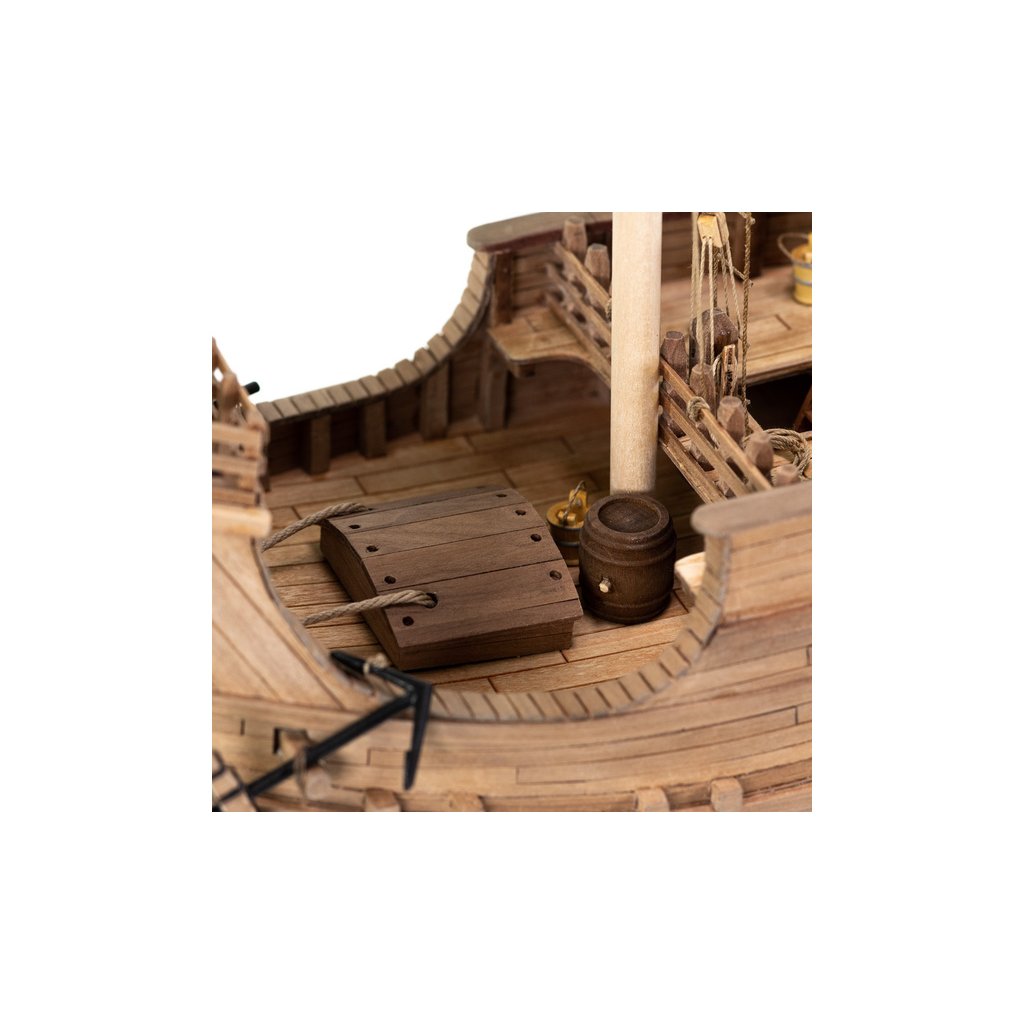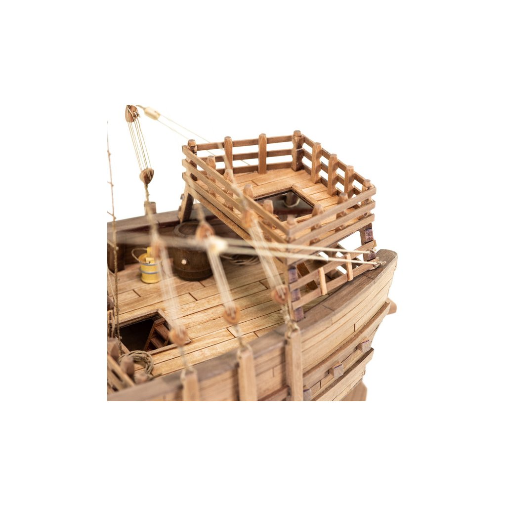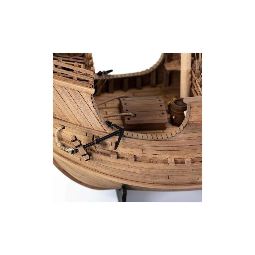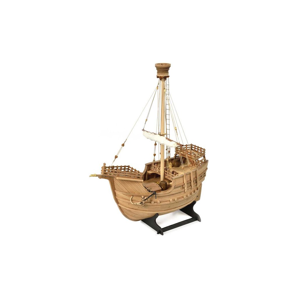 Stavebnice statické makety lodi, AMATI Coca - Karacke 15. století 1:60 kit. Byly používány v 15. století jako obchodní lodě. Typickým znakem byly dvě nástavby, ze kterých se posádky mohly bránit proti pirátským útokům. Z vyhlídky na vrcholku stožáru se pozorovalo okolního moře. Dřevěné díly jako kýl a obšívka jsou řezány laserem, obsahuje plachty, příslušenství a plány.