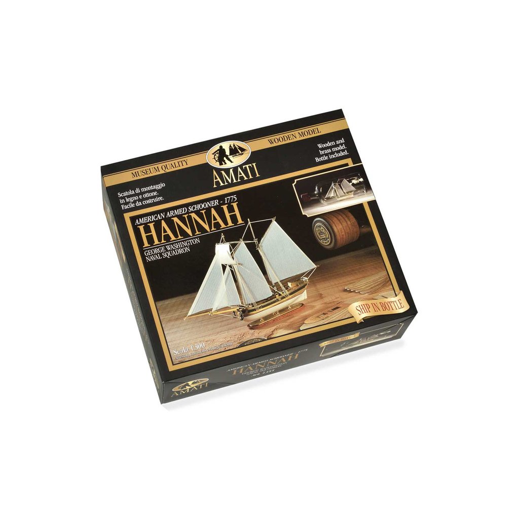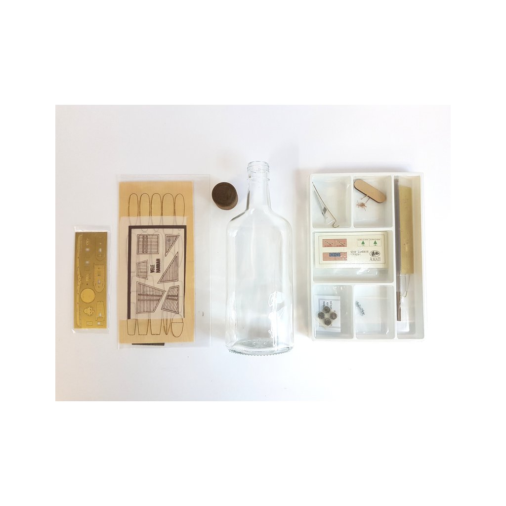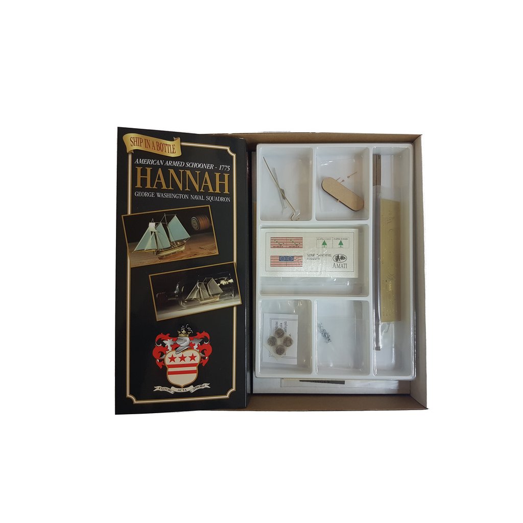 Sníte o historické lodi ve skleněné láhvi? Krásná dekorace AMATI Hannah 1:300 obsahuje vše pro sestavení a vy si můžete dopřát to potěšení a uskutečnit stavbu lodi v láhvi. Laserem řezané dřevěné díly, leptaná mosazná paluba, kýl, kování, ozdobné prvky a krásná skleněná láhev, vše je v sadě.