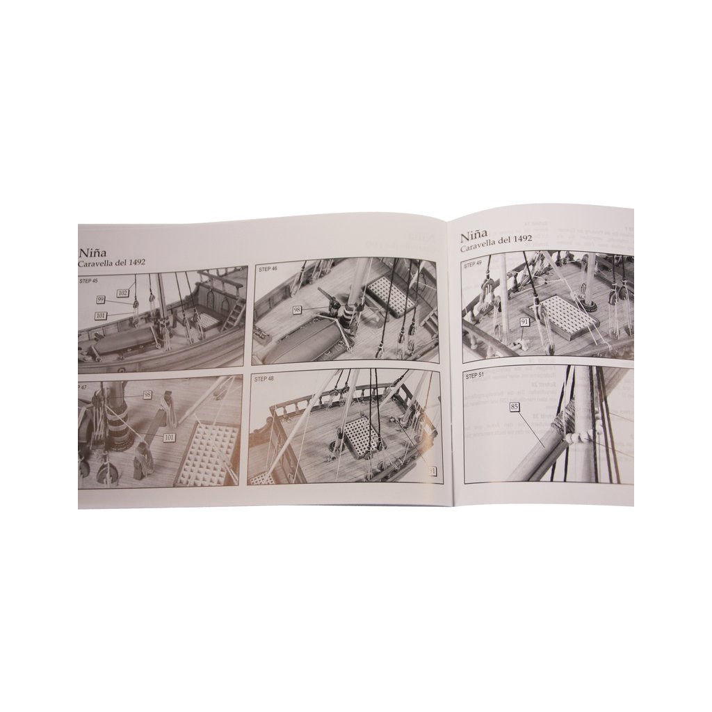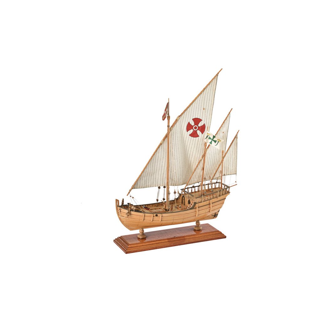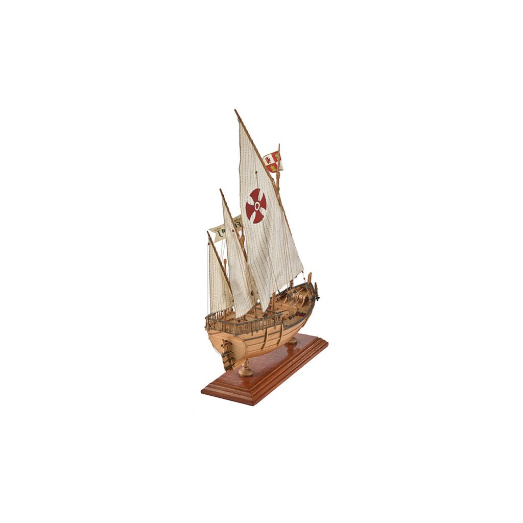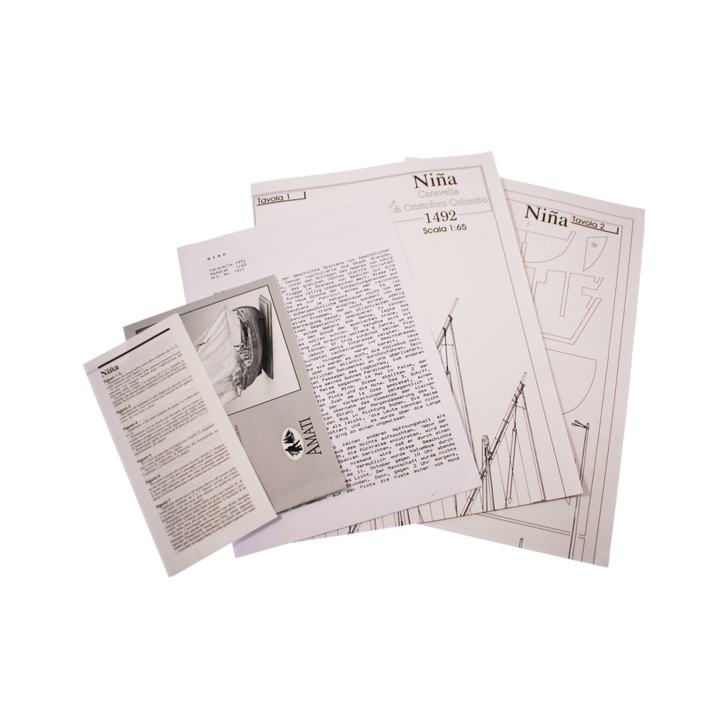 Stavebnice statické makety lodi, AMATI Niňa karavela z roku 1492 v měřítku 1:65 kit. Jedna ze tří lodí, s nimiž Kryštof Kolumbus objevil Ameriku. Tento model je součástí série Columbus společnosti AMATI. Dřevěné díly jako kýl a obšívka jsou řezány laserem, obsahuje plachty, lanoví, stožáry, kování a plány.