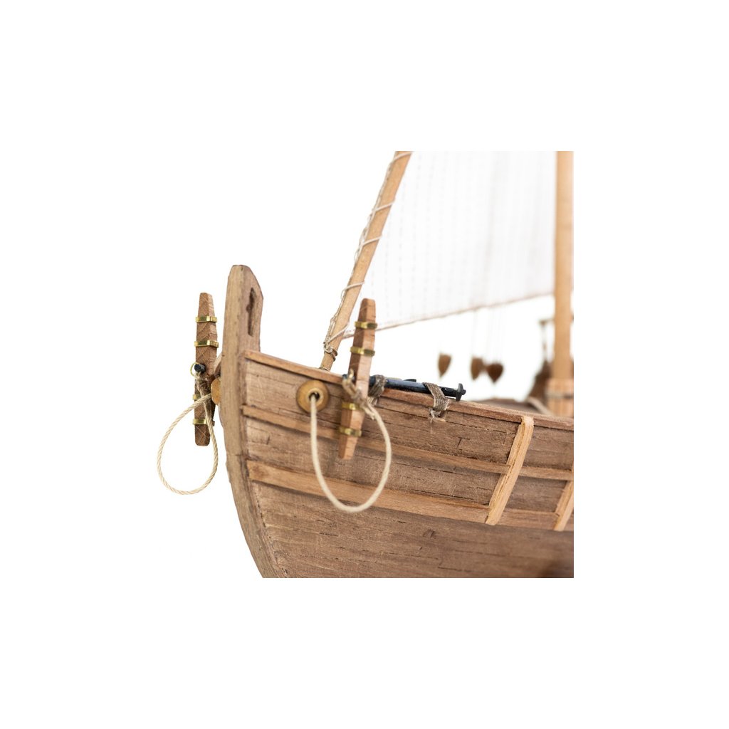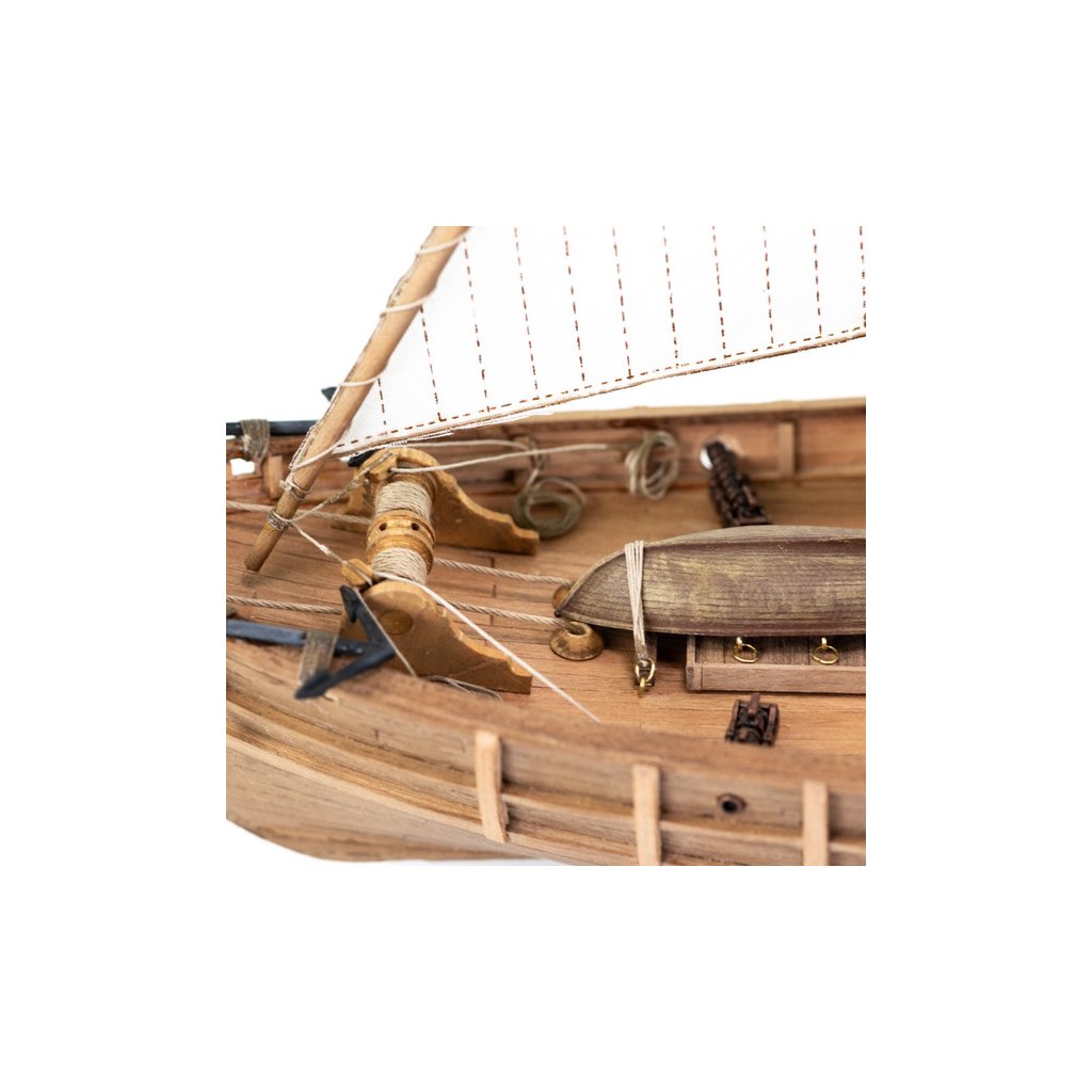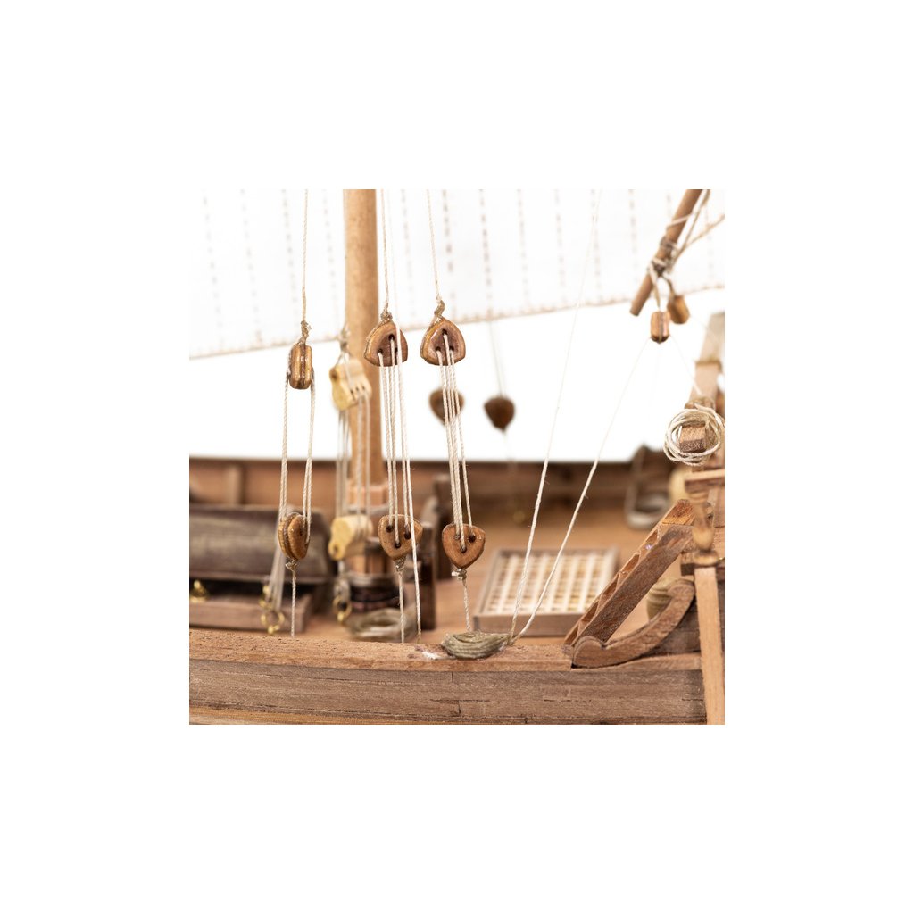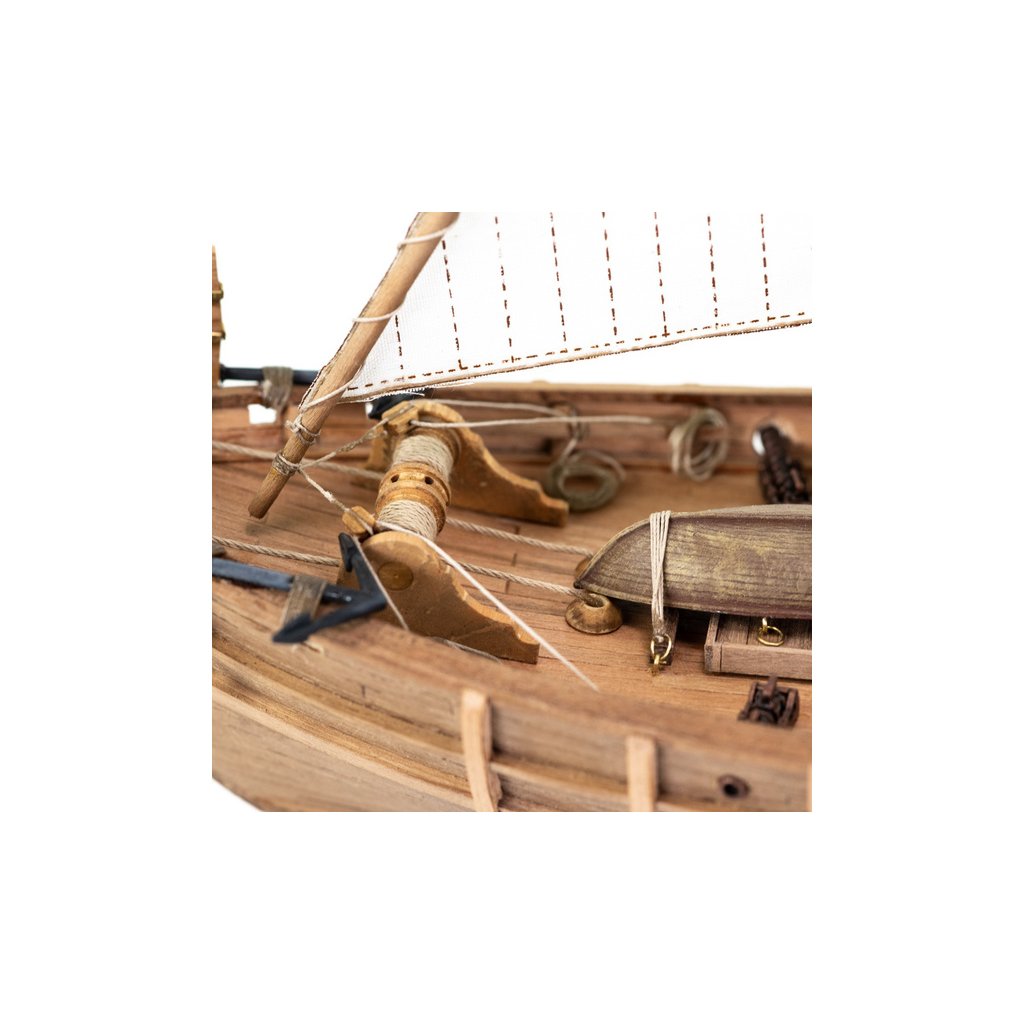Stavebnice statické makety lodi, AMATI Niňa karavela z roku 1492 v měřítku 1:65 kit. Jedna ze tří lodí, s nimiž Kryštof Kolumbus objevil Ameriku. Tento model je součástí série Columbus společnosti AMATI. Dřevěné díly jako kýl a obšívka jsou řezány laserem, obsahuje plachty, lanoví, stožáry, kování a plány.