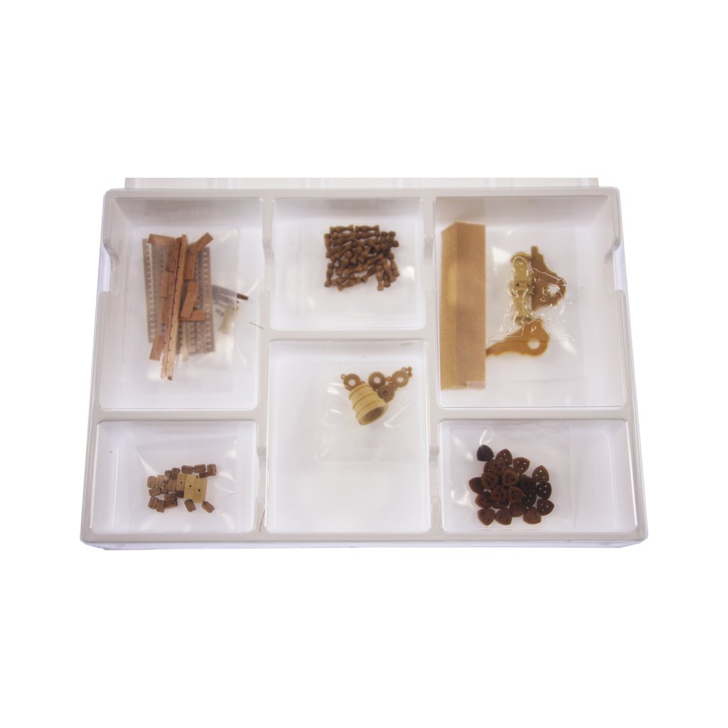 Po otevření víka krabice naleznete dřevěné díly modelu z překližky, sadu lišt, drobné součásti uzavřené v plastovém průhledném blistru, sadu výkresů a manuál.