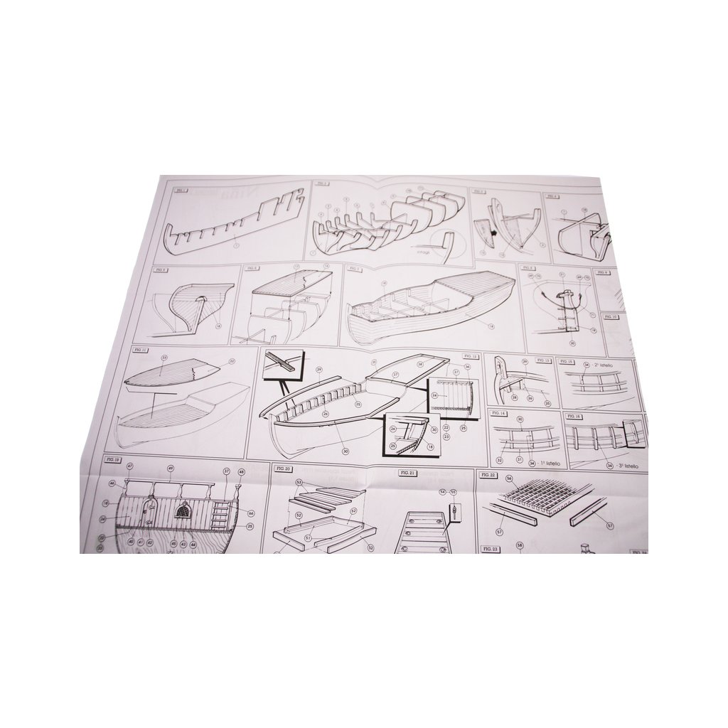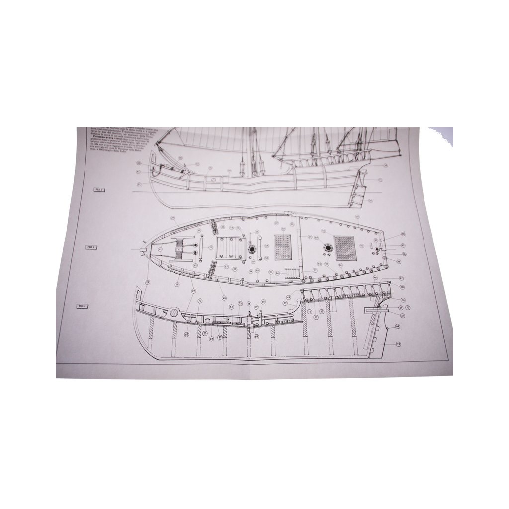 Set obsahuje kompletní sadu výkresové dokumentace modelu v měřítku 1:1 s postupem stavby, na výkrese jsou pečlivě označeny díly a je zde i seznam jednotlivých součástí modelu.