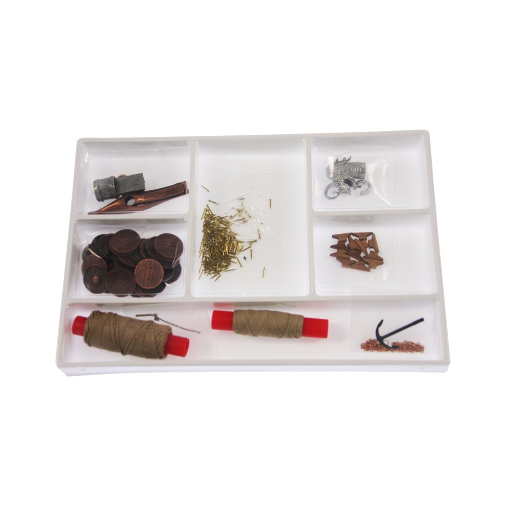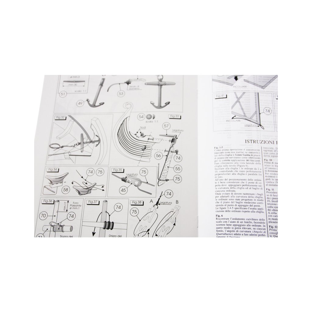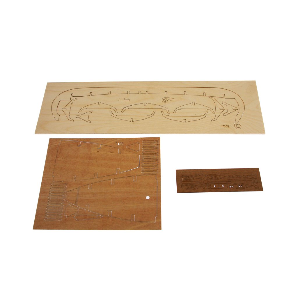 Balení obsahuje sadu překližkových dílů, sadu dřevěných lišt o různém průřezu, blistr s drobnými díly, sadu výkresů a manuál anglický, německý, francouzský a italský a návod v češtině.