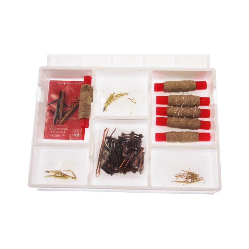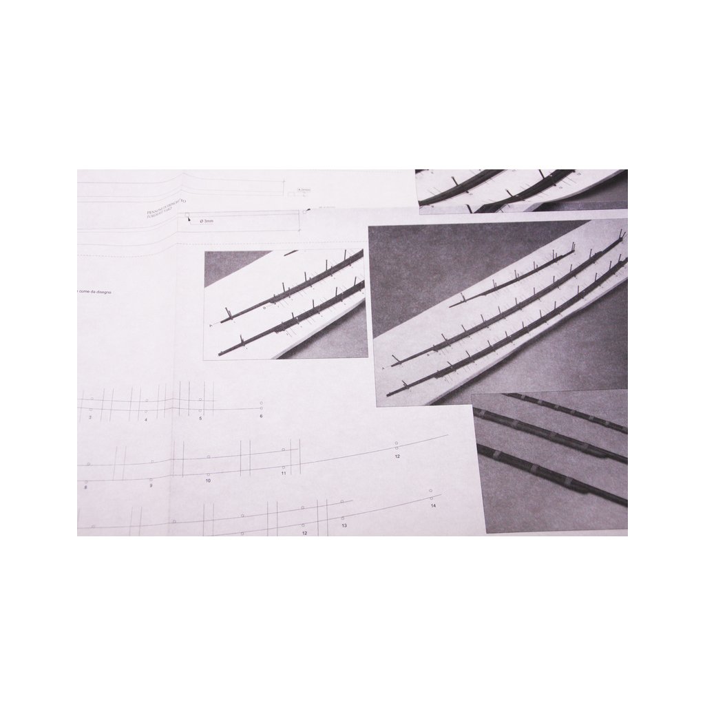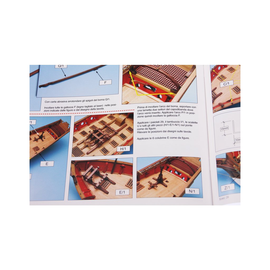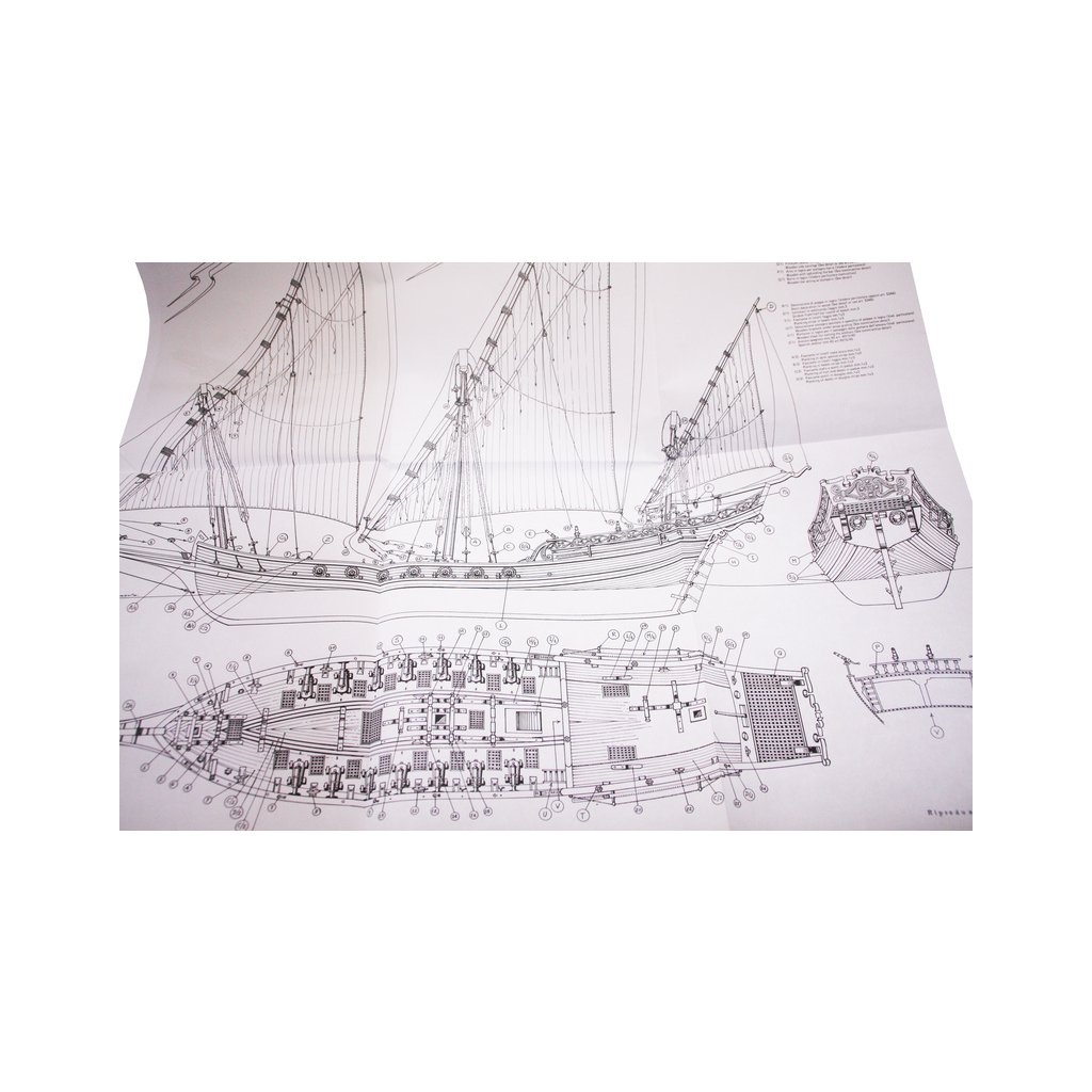 Balení obsahuje sadu překližkových dílů, sadu dřevěných lišt o různém průřezu, blistr s drobnými díly, sadu výkresů a manuál anglický, německý, francouzský a italský.