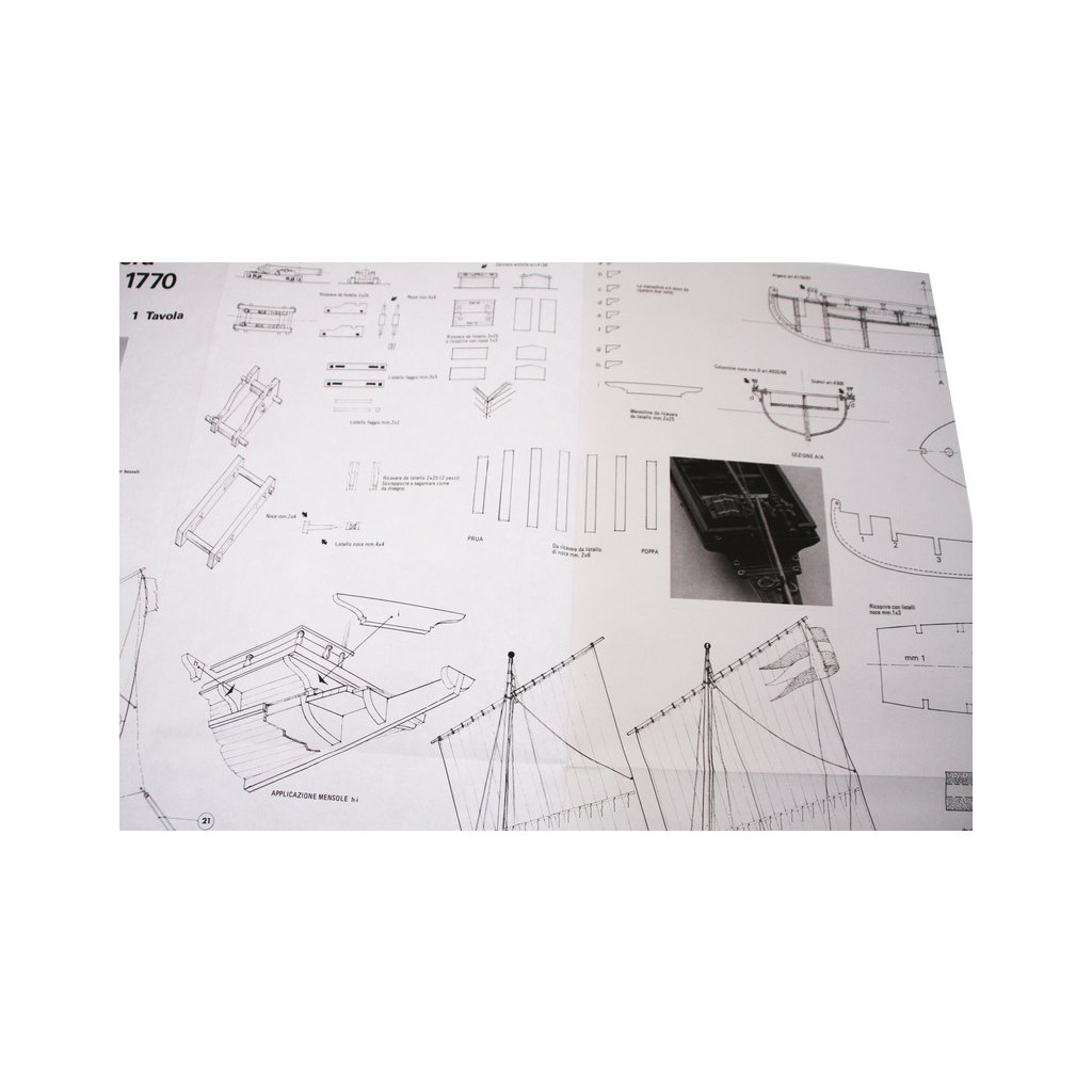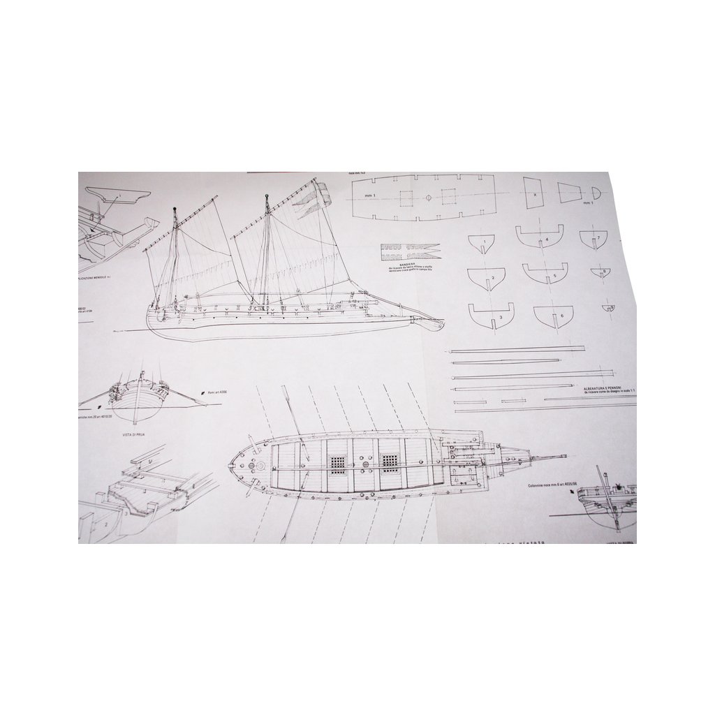 Set obsahuje kompletní sadu výkresové dokumentace modelu v měřítku 1:1 s postupem stavby, na výkrese jsou pečlivě označeny díly a je zde i seznam jednotlivých součástí modelu.