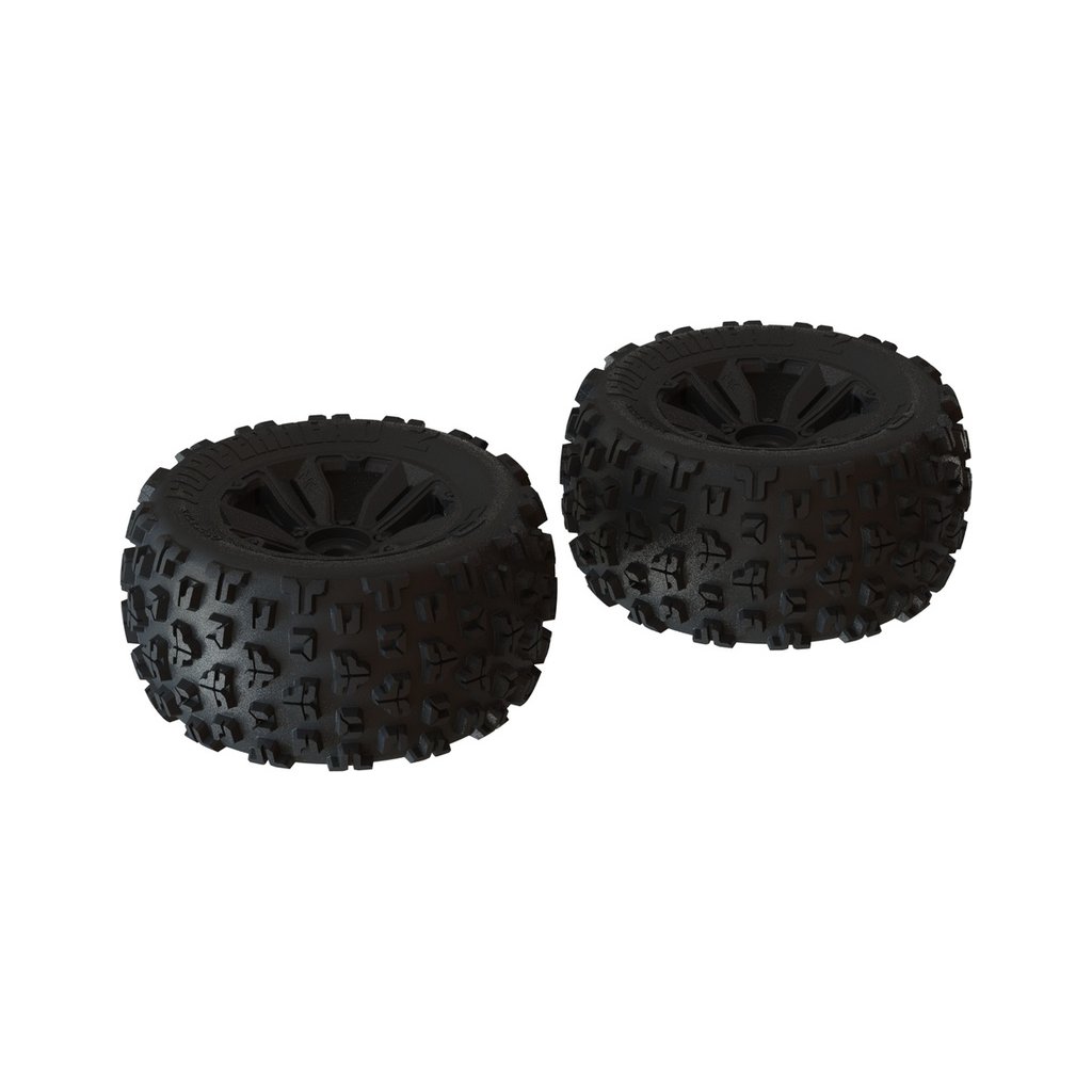Disky jsou opatřeny vícepaprskovým stylovým designem a zvýšenou pevností. Pevný nylon má vysokou odolnost na všech površích. Černá barva pro stylový vzhled ARRMA. 17mm unášecí šestihrany mají super pevnost při extrémní jízdě. Pěnové vložky s vysoce kvalitní pěnou jsou vynikající podporou pro běhoun pneumatiky. Speciálně je navržena tak, aby poskytovala dokonalou rovnováhu pro agresivní přilnavost a snadnou ovladatelnost.