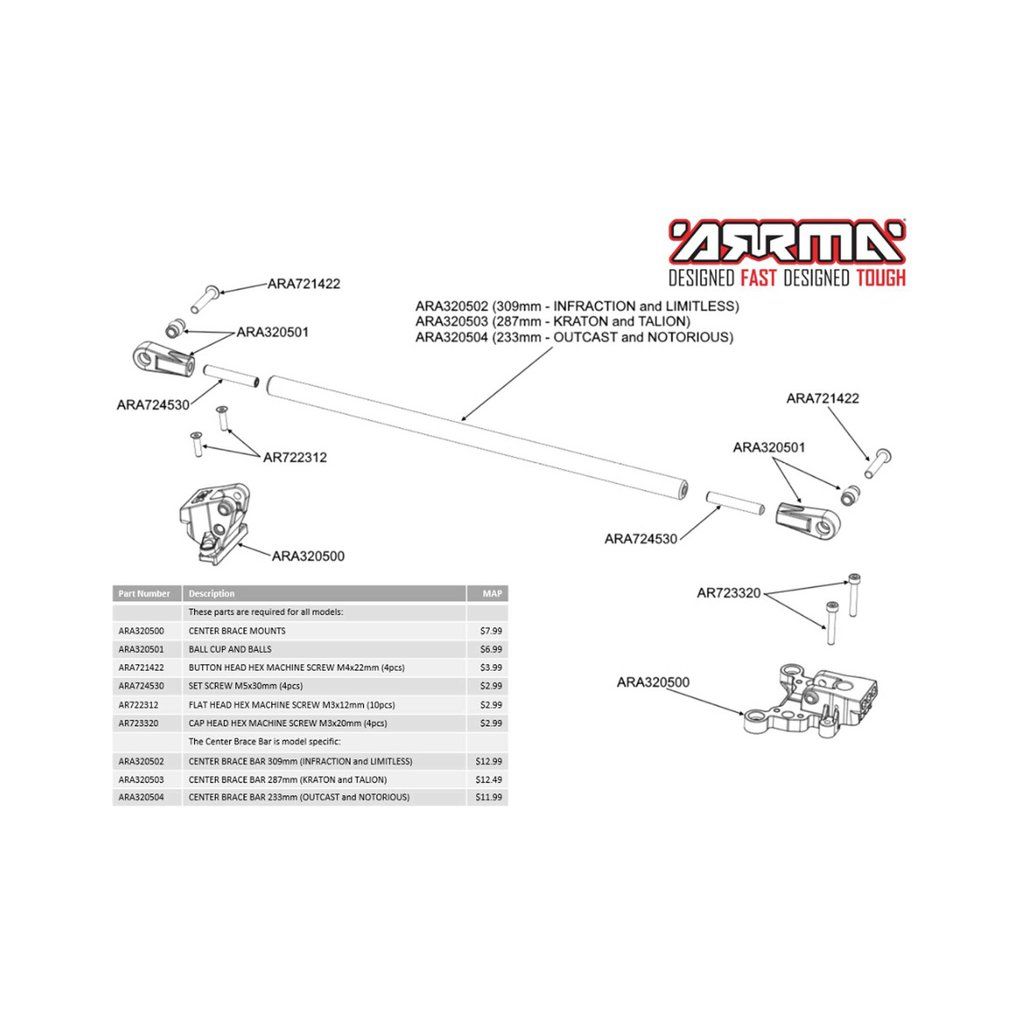 Arrma lože centrální příčky šasi