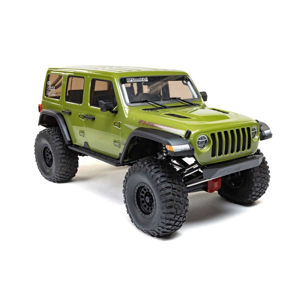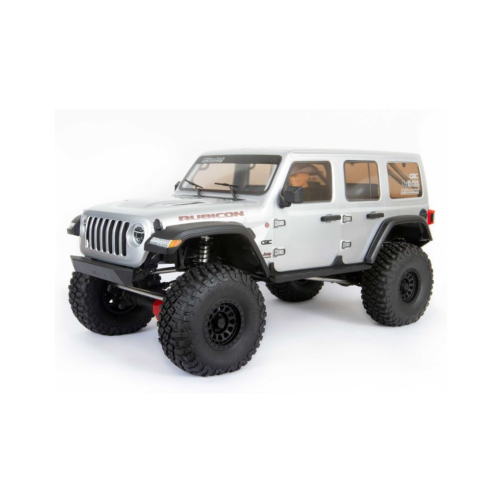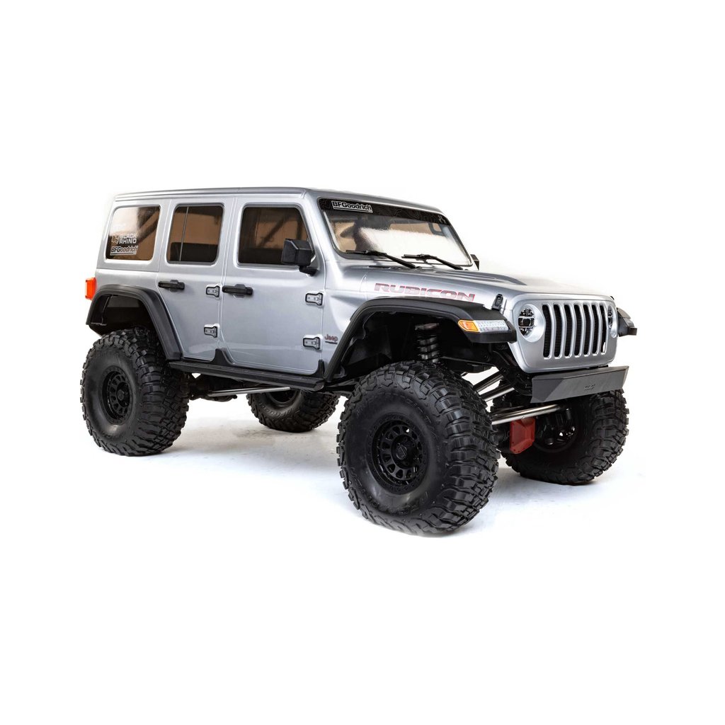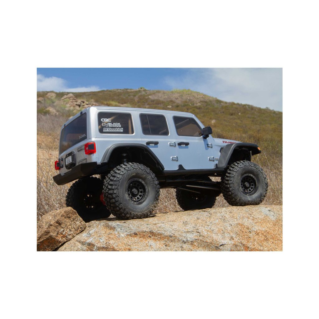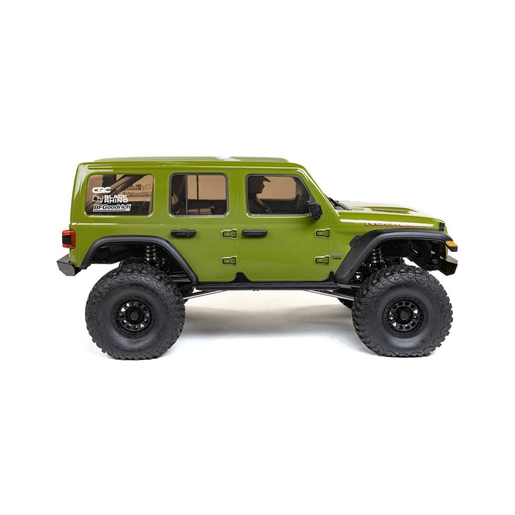 Masivní, 7" velké pneumatiky BFGoodrich® KM3 mají vynikající přilnavost a poskytují autu velkou světlou výšku pro jízdu přes kameny a všechny terénní nerovnosti. Jsou obuty na licencovaných, 3-dílných beadlock kolech Black Rhino Primm, takže pneumatiky lze snadno vyjmout, vysušit či vyměnit bez lepení. Nyní je SCX6™ Jeep® JLU Wrangler 4WD připraven vyrazit kamkoli a nabídnout vám skvělou zábavu.