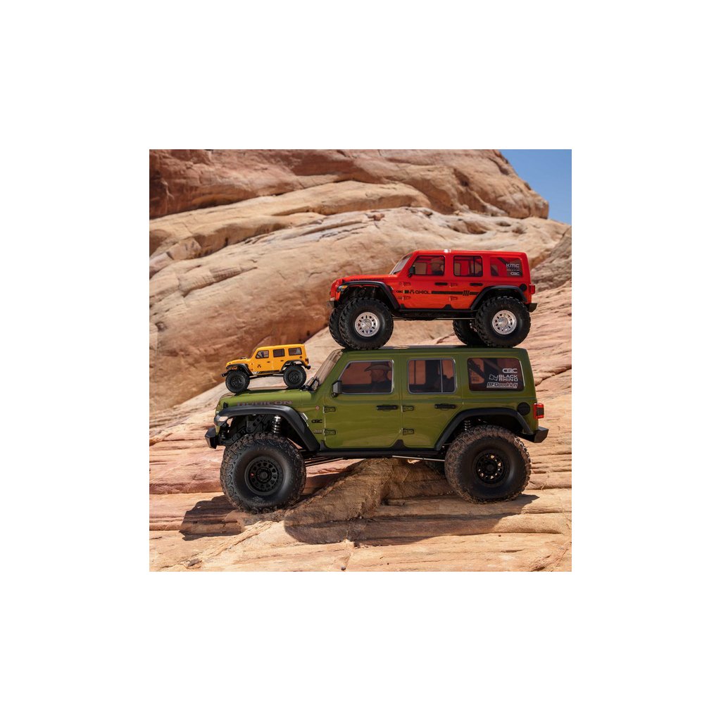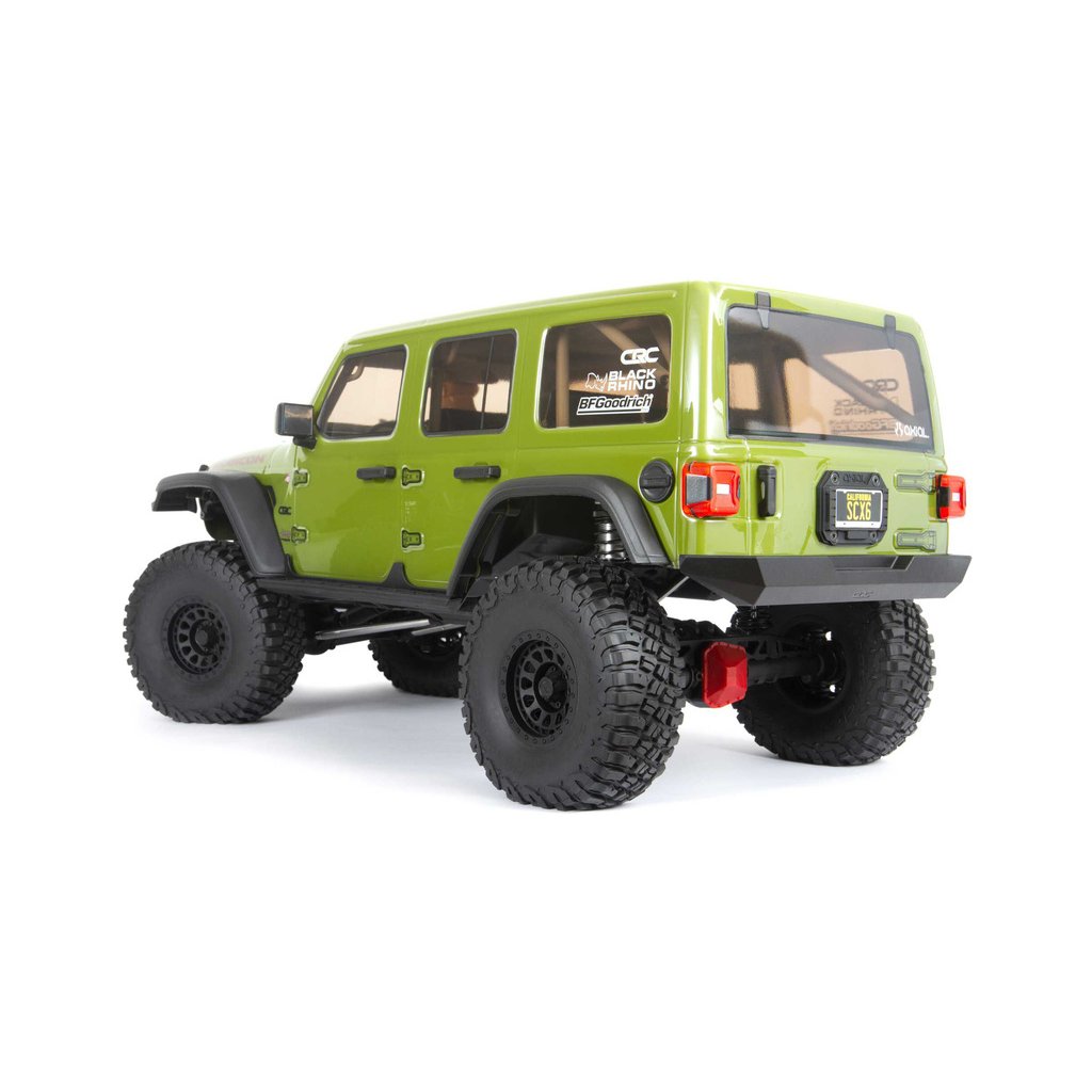 SCX6™ Jeep® JLU Wrangler 4WD posouvá maketovost Axial® na vyšší úroveň. Na základě konstrukce osvědčeného podvozku SCX10™ III, byl navržen nový větší podvozek SCX6™ v měřítku 1:6. Je navržen pro extrémní odolnost a výkon s nápravami AR90. Pro optimální ovladatelnost má podvozek tří-bodové přední zavěšení Panhard a zadní čtyř-bodové zavěšení. Převodovka nabízí řazení dvou převodových stupňů, přičemž součástí dodávky je i servo s kovovým převodem Spektrum™ S614 a táhlo řazení.
