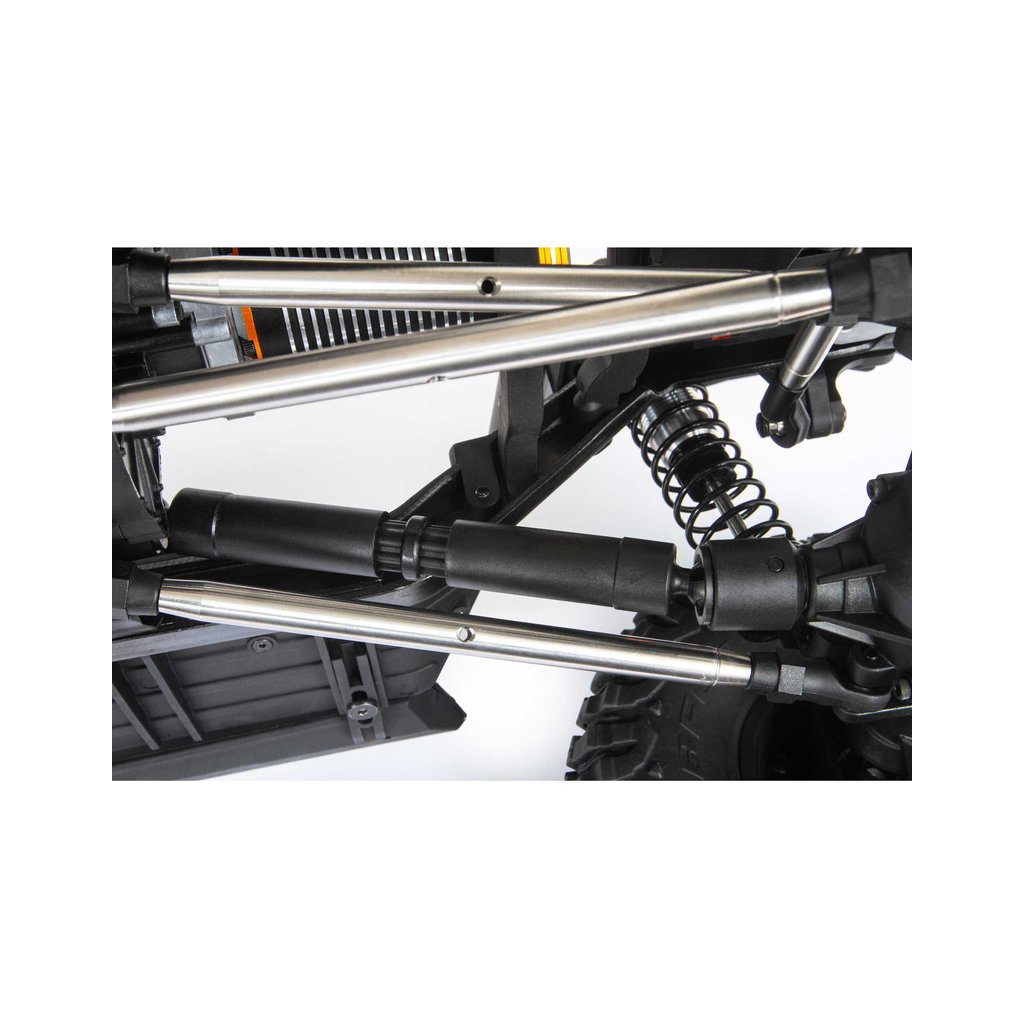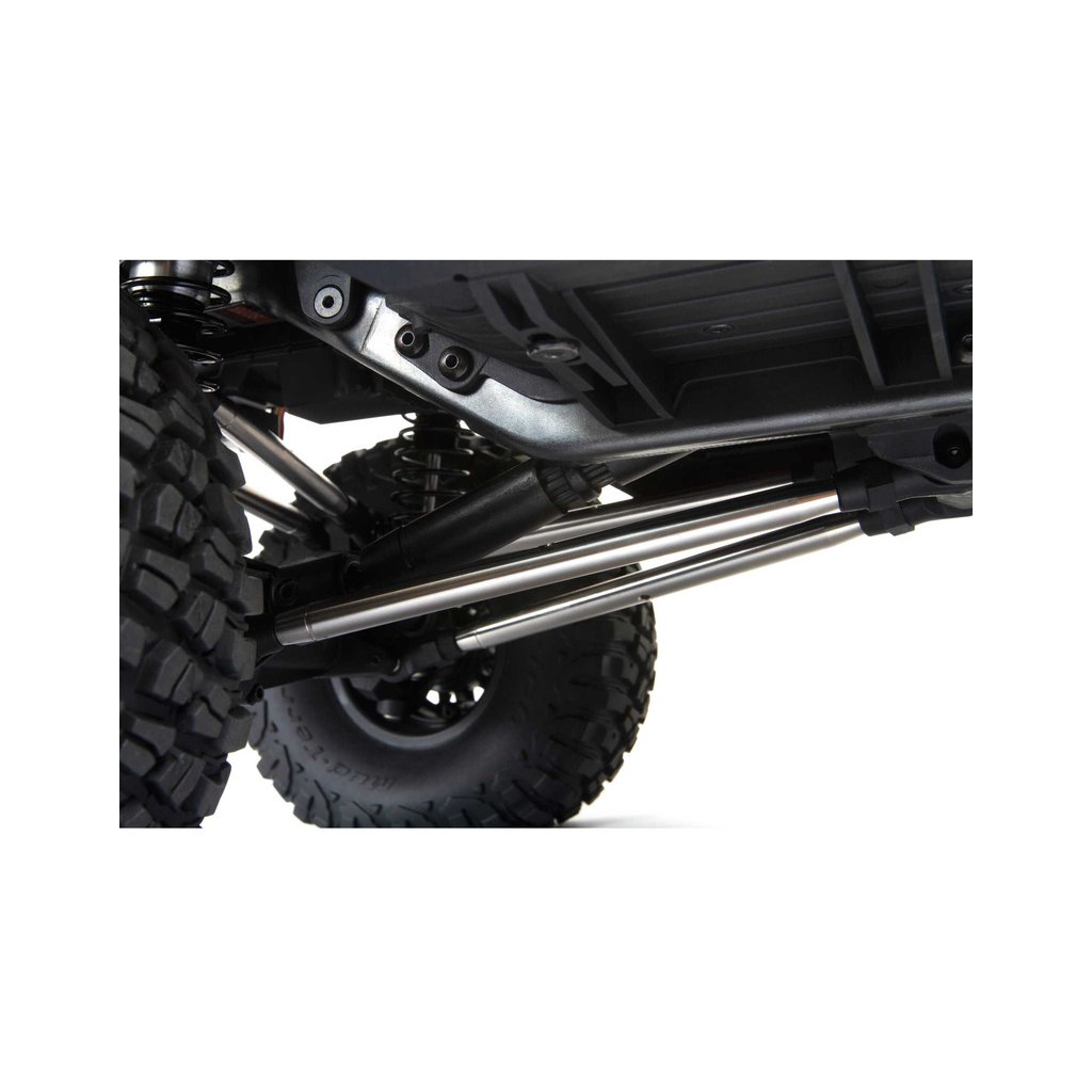 Pro optimální ovladatelnost je model na podvozku SCX6™ vybaveno odolným tří.bodovým předním a čtyř-bodovým zadním zavěšením náprav AR90. Nápravy mají pevností hřídele pro vysoké zatížení a zvládají jízdu v těžkém terénu.