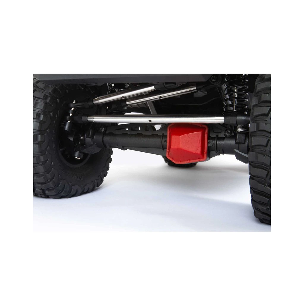 Pro optimální ovladatelnost je model na podvozku SCX6™ vybaveno odolným tří.bodovým předním a čtyř-bodovým zadním zavěšením náprav AR90. Nápravy mají pevností hřídele pro vysoké zatížení a zvládají jízdu v těžkém terénu.