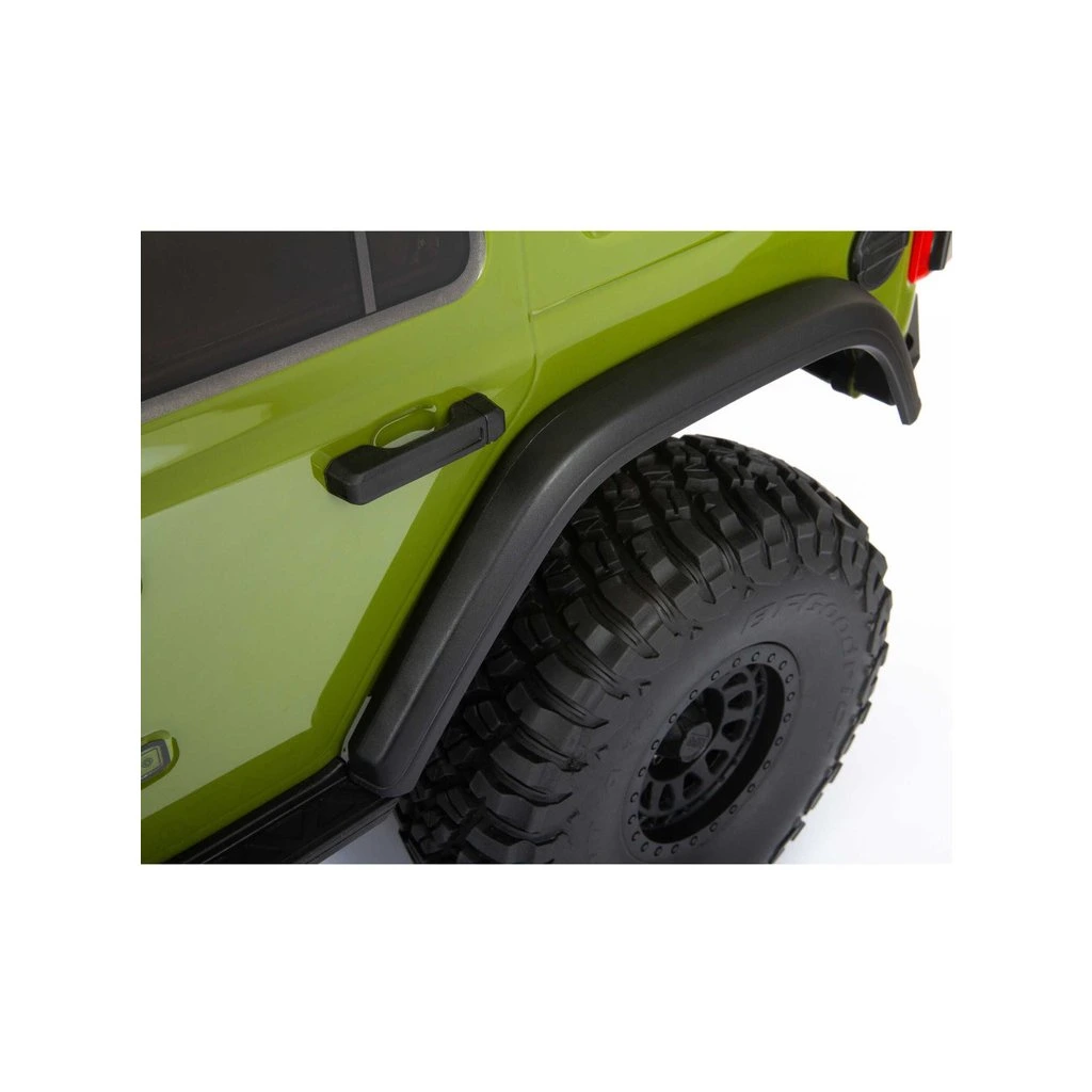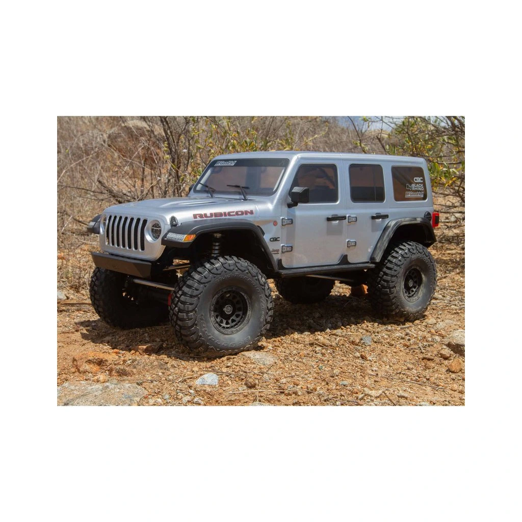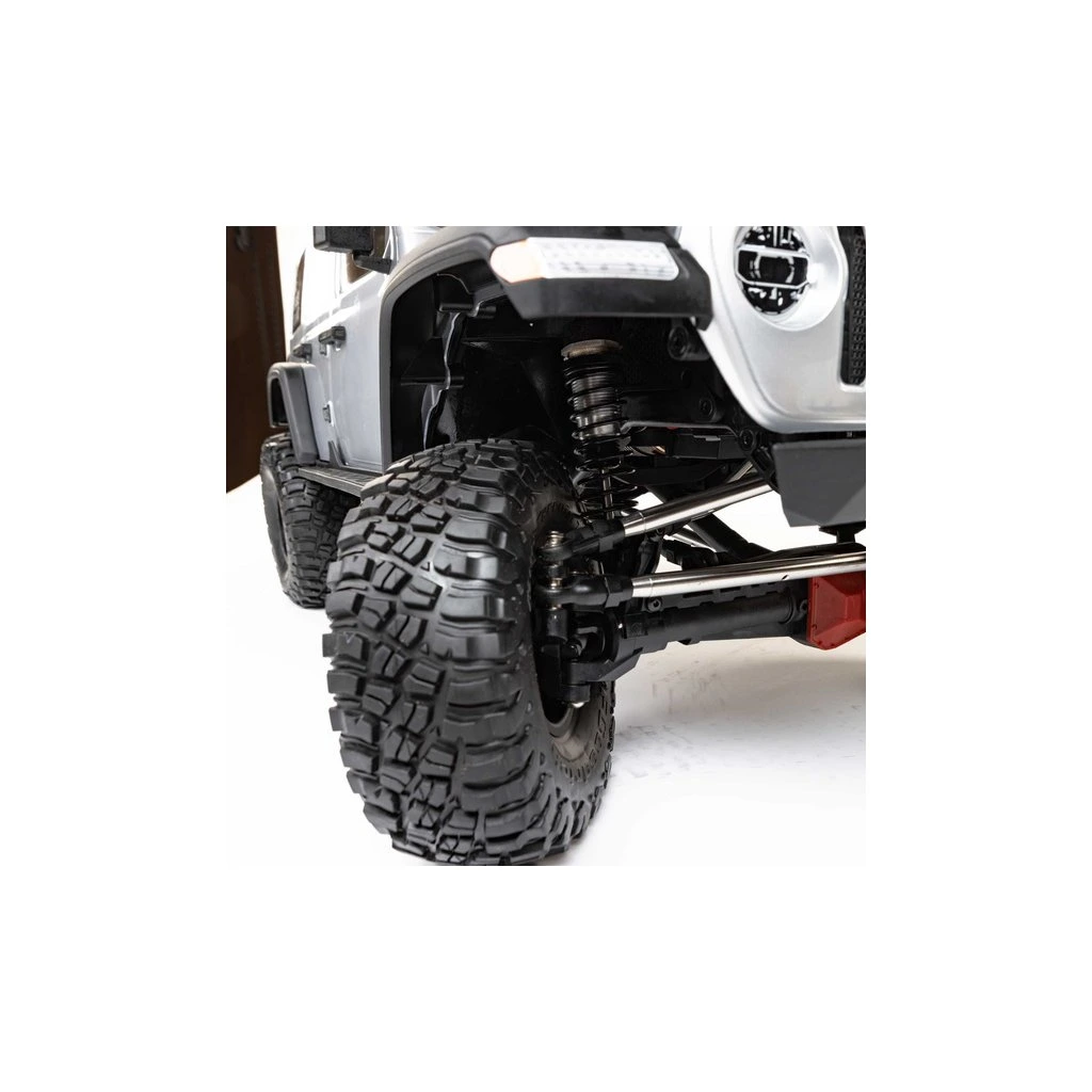 Masivní, 7" velké pneumatiky BFGoodrich® KM3 mají vynikající přilnavost a poskytují autu velkou světlou výšku pro jízdu přes kameny a všechny terénní nerovnosti. Jsou obuty na licencovaných, 3-dílných beadlock kolech Black Rhino Primm, takže pneumatiky lze snadno vyjmout, vysušit či vyměnit bez lepení. Nyní je SCX6™ Jeep® JLU Wrangler 4WD připraven vyrazit kamkoli a nabídnout vám skvělou zábavu.