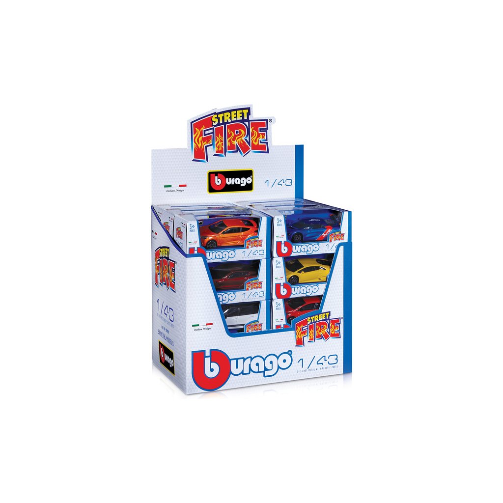Kovové modely aut 1:43 Bburago jsou uloženy a prodávány v prodejním displeji, který obsahuje celkem 24 modelů autíček. Orientační seznam autíček v sadě - viz. seznam níže: