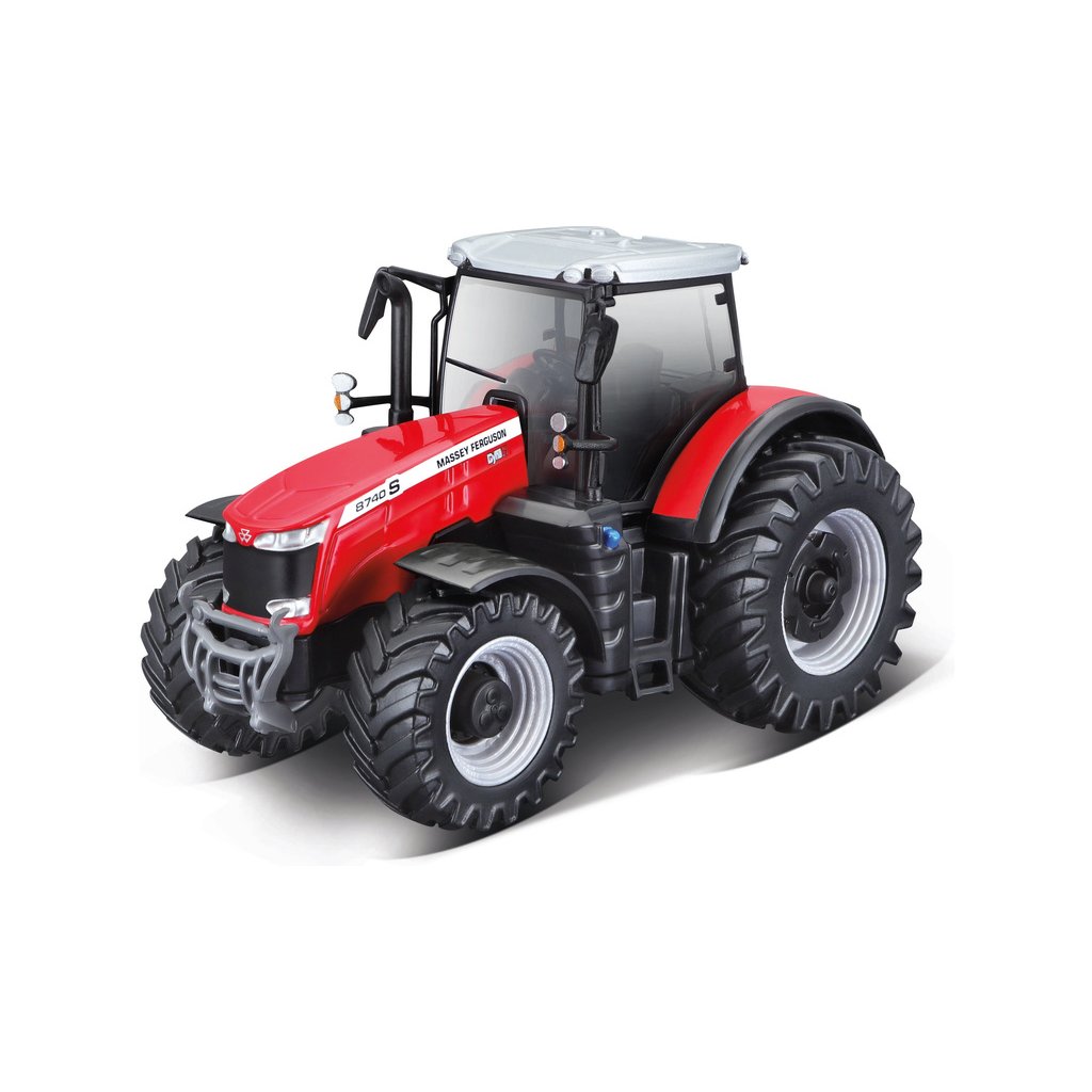 Model Bburago 18-31613 - traktor Massey Ferguson 8740S je vyrobený z kovových a plastových dílů. Model má setrvačník, zadní závěs pro připojení vlečky a odjímatelnou kabinu, je v detailním provedení.