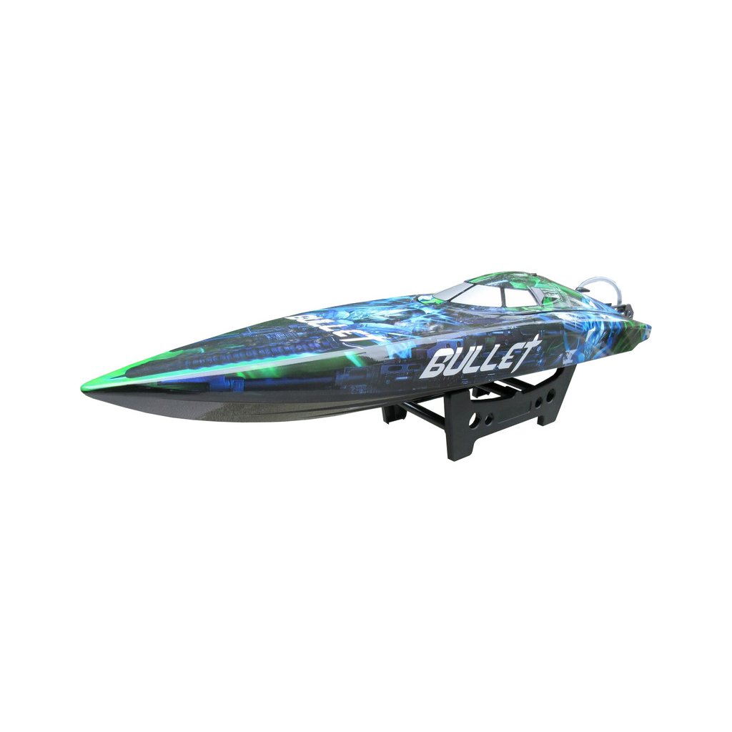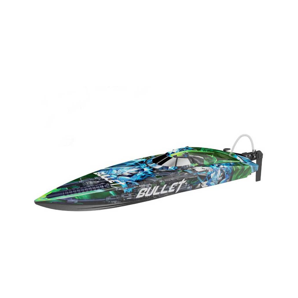 Jako střela vyrazí po vodní hladině rychlostní RC model člunu na dálkové ovládání Bullet Brushless V4 2.4GHz. Délka více než 70cm, střídavý vodou chlazený motor BL2815 a regulátor 60A. RC souprava 2,4 GHz FHSS s přijímačem J2C91R. Nové atraktivní zbarvení.