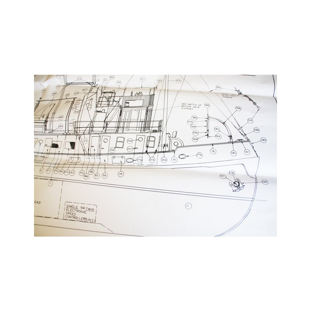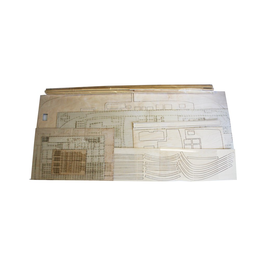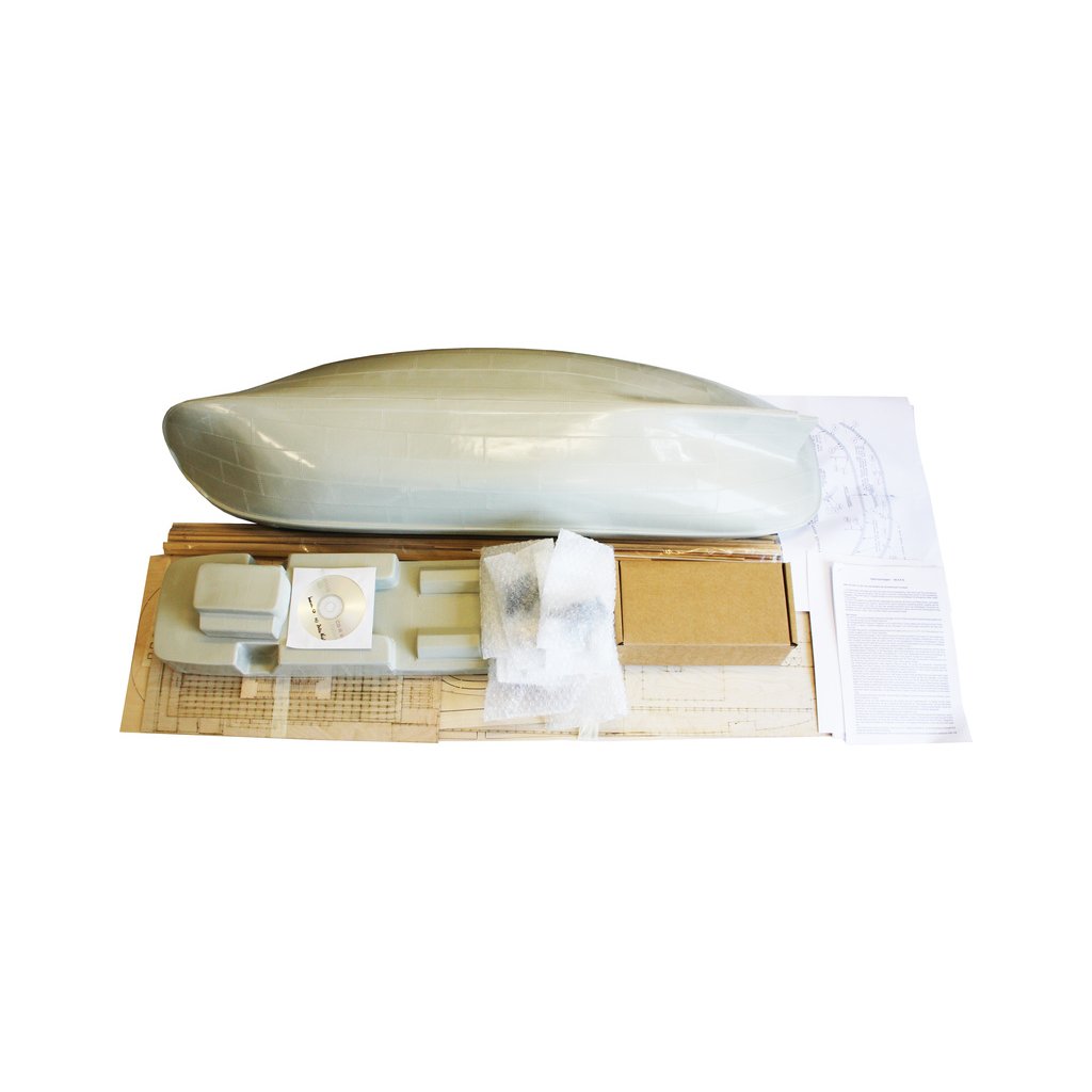 Sada obsahuje pečlivě zpracovaný laminátový trup, nástavbu a komín. Všechny překližkové díly paluby a nástavby jsou přesně vyfrézovány na CNC frézce. Součástí dodávky jsou také tištěné překližkové panely pro kormidelnu a palubu. Obzvláště rozsáhlá je sada kování s přibližně 800 litými kovovými díly, včetně nádobí v salonu a nábytku. Čluny jsou hluboce tažené u plastu. Trup má výstupy pro 2 lodní šrouby.