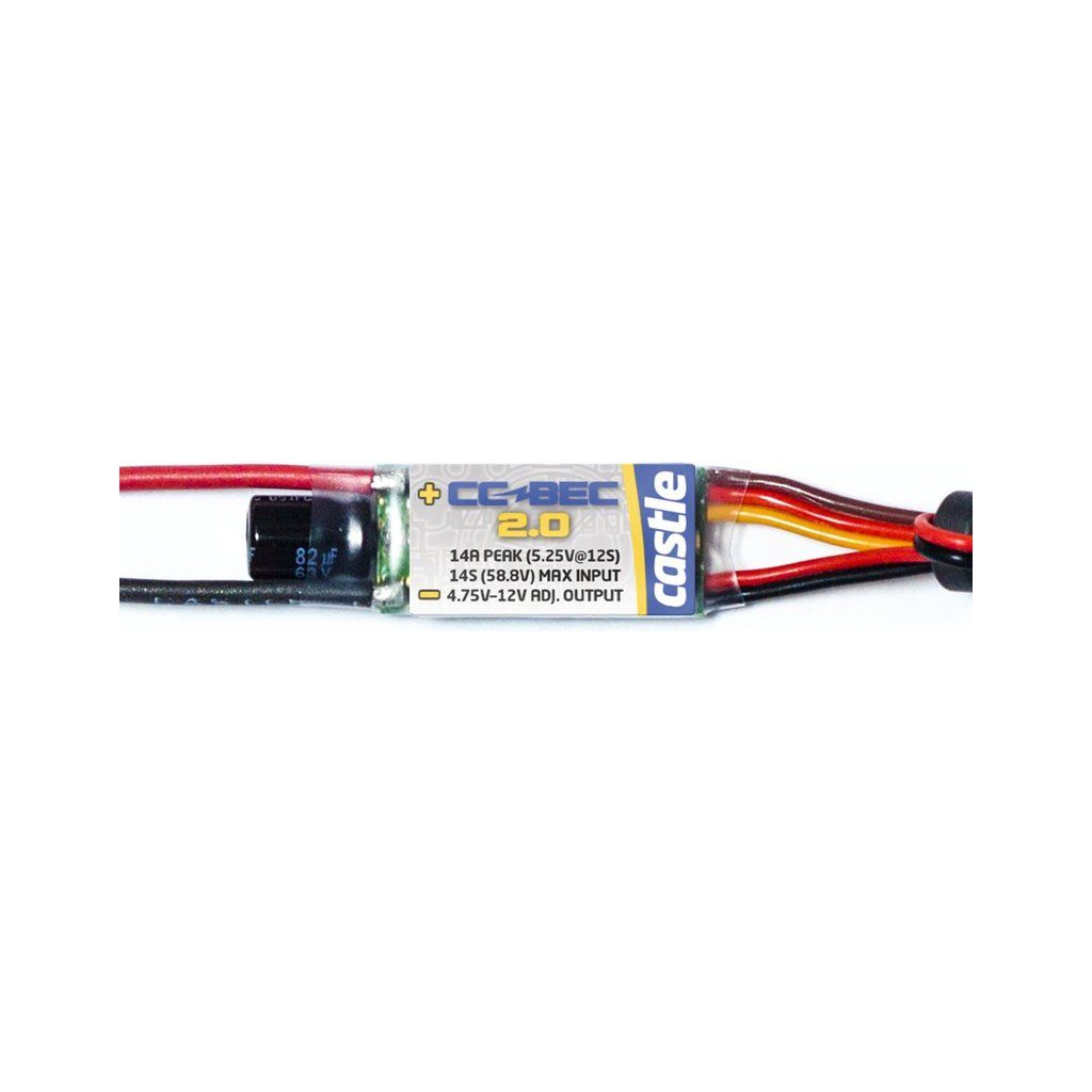 BEC 2.0 nesmí být zapojen do série nebo paralelně s jiným zdrojem BEC nebo záložním napájením přijímače.