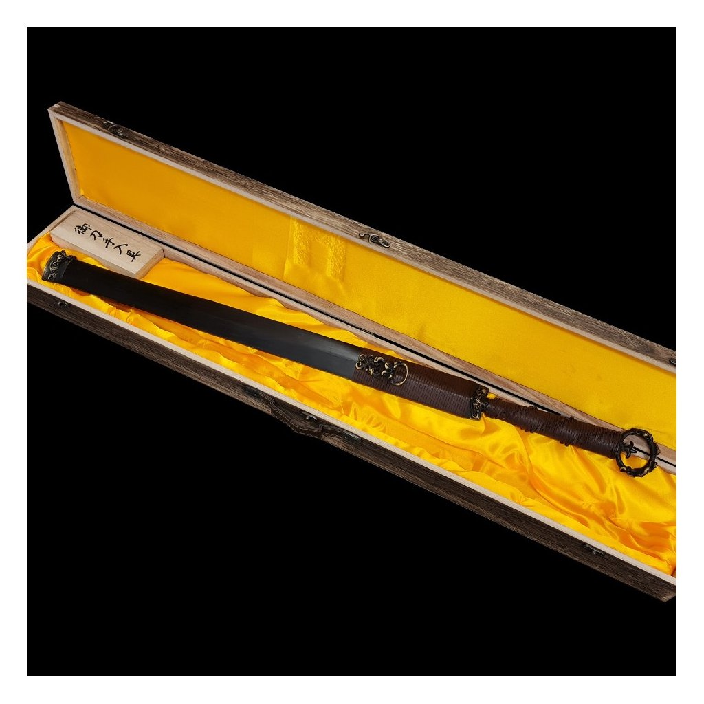 Replika tradiční čínské šavle Han Dao z překládané oceli, s dřevěnou pochvou