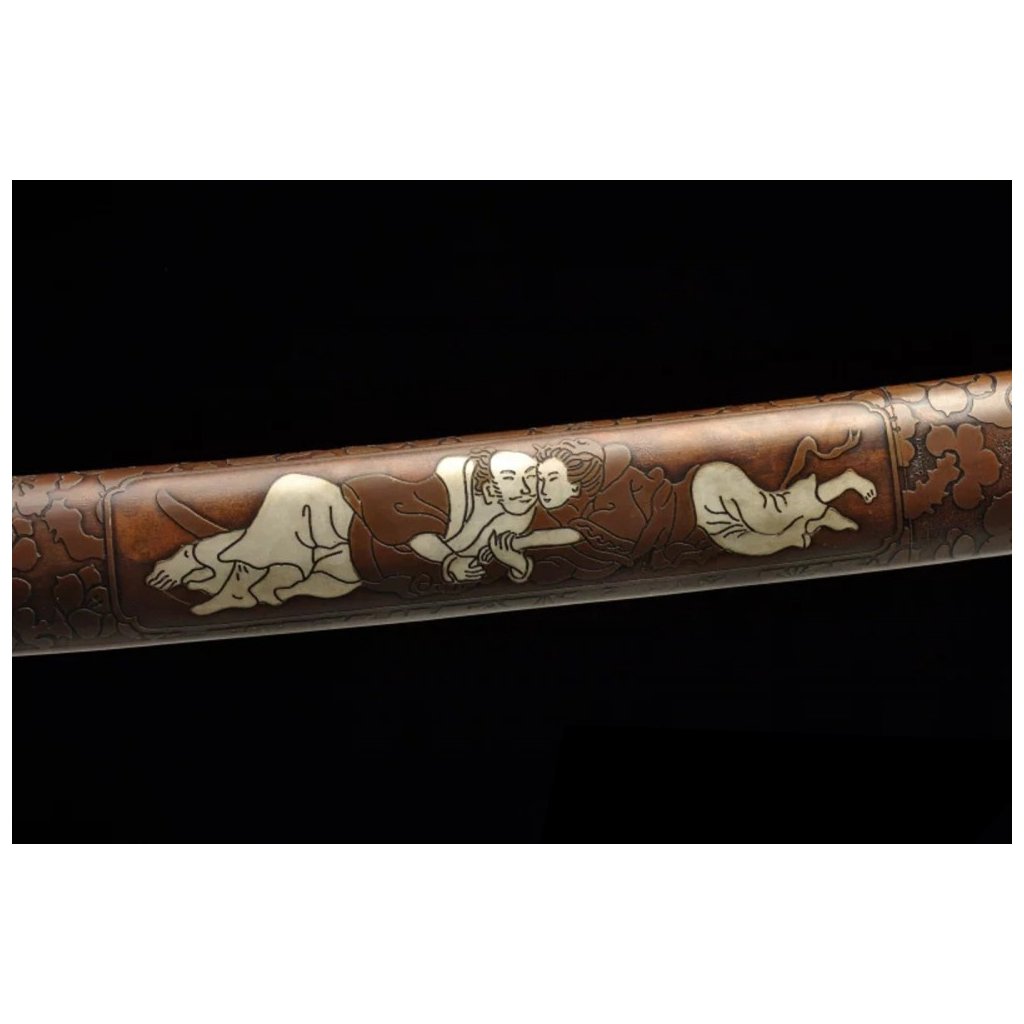 Pouzdro (saya) je vyrobeno z lakovaného kovu s detailními kresbami. Pro pohodlné přenášení je na pouzdru umístěn mosazný kroužek. Komponenty Kashira, fuchi, tsuba, koiguchi a kojiri jsou vyrobeny z masivní mosazi, stejně jako drážkované Habaki.