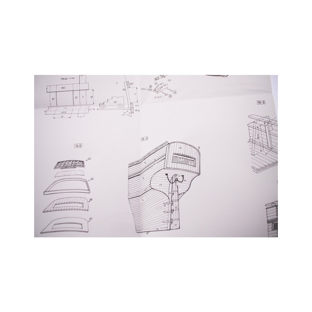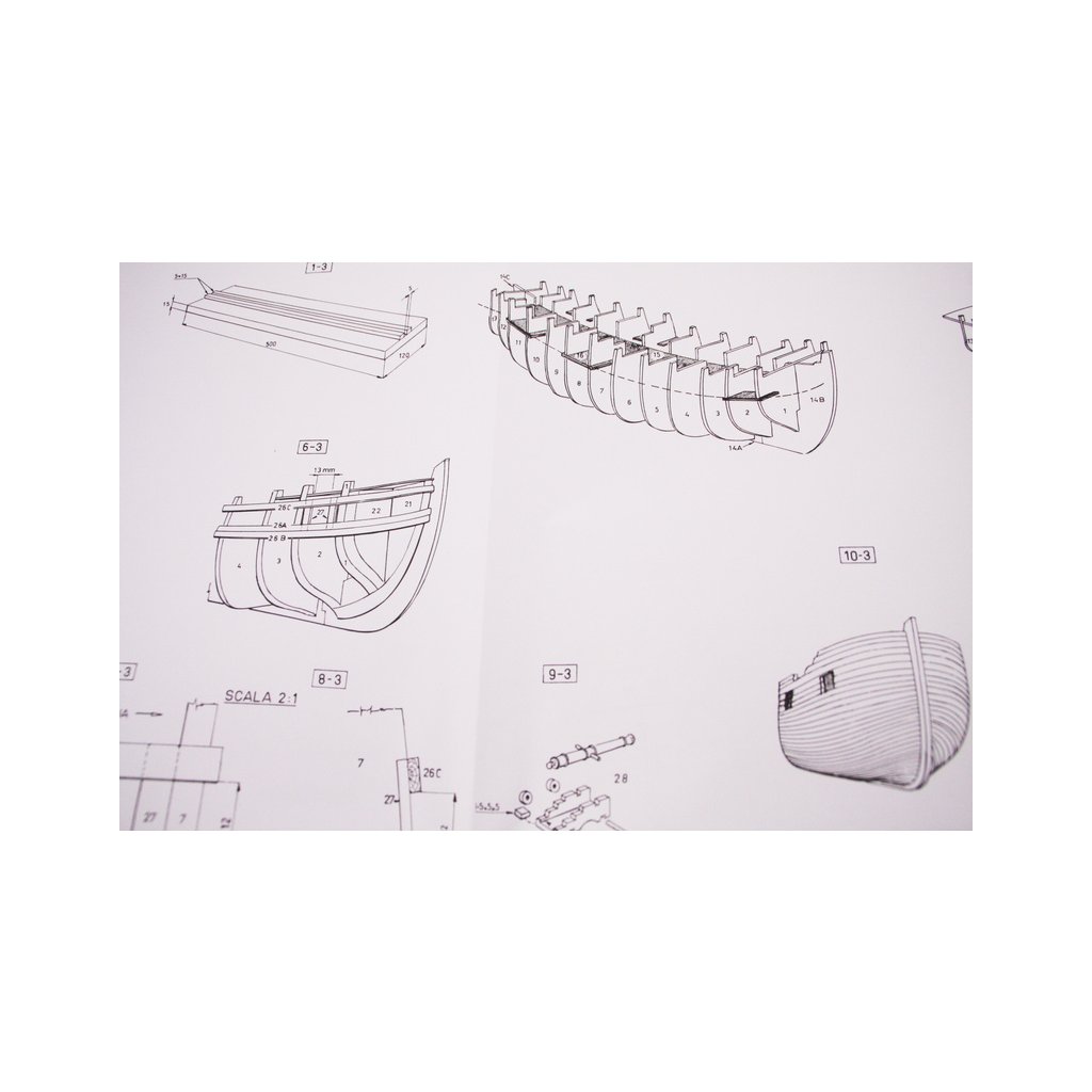 Set obsahuje kompletní sadu výkresové dokumentace modelu v měřítku 1:1 s postupem stavby, na výkrese jsou pečlivě označeny díly a je zde i seznam jednotlivých součástí modelu.