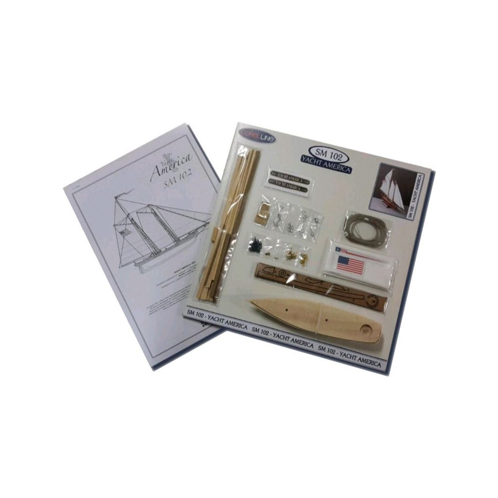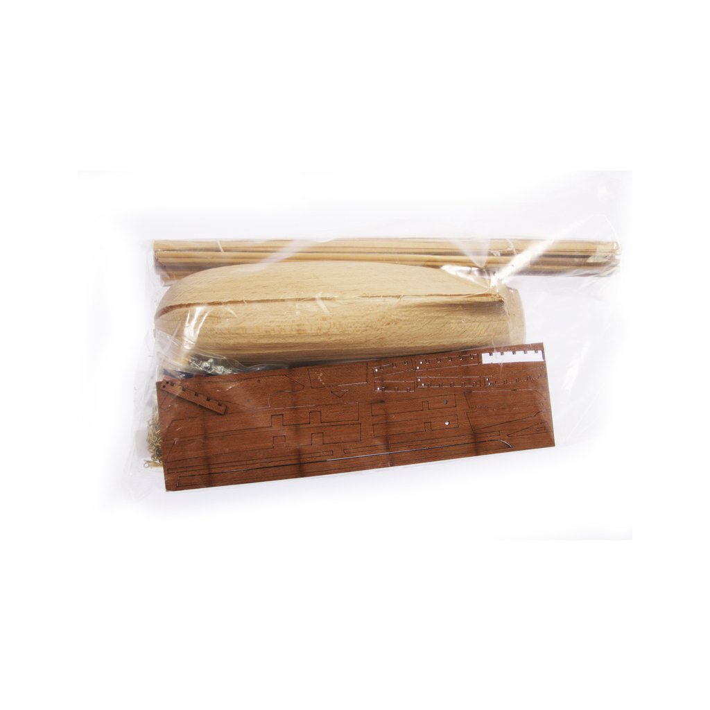 Balení obsahuje trup lodi, sadu překližkových dílů, sadu dřevěných lišt o různém průřezu, sáček s drobnými díly, sadu výkresů a vícejazyčný manuál.