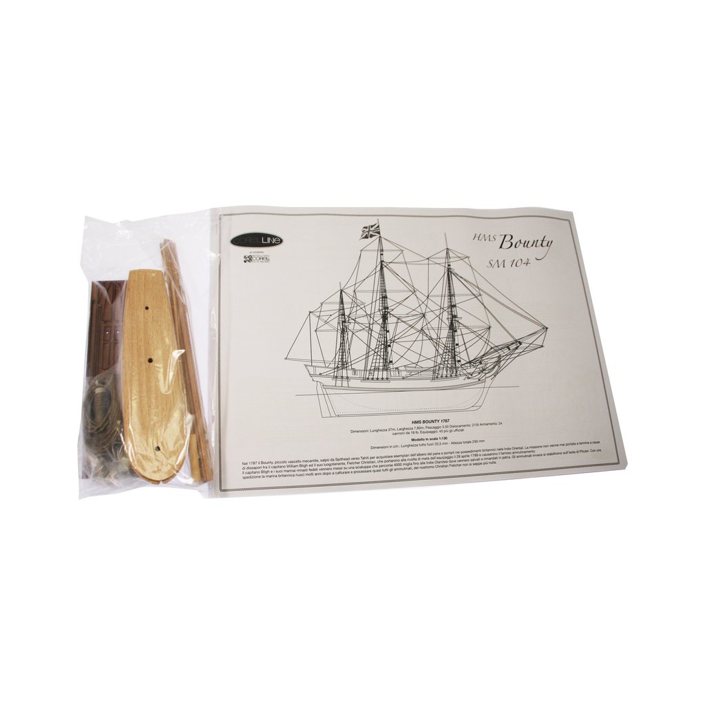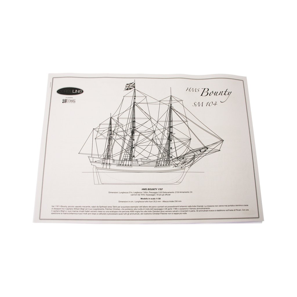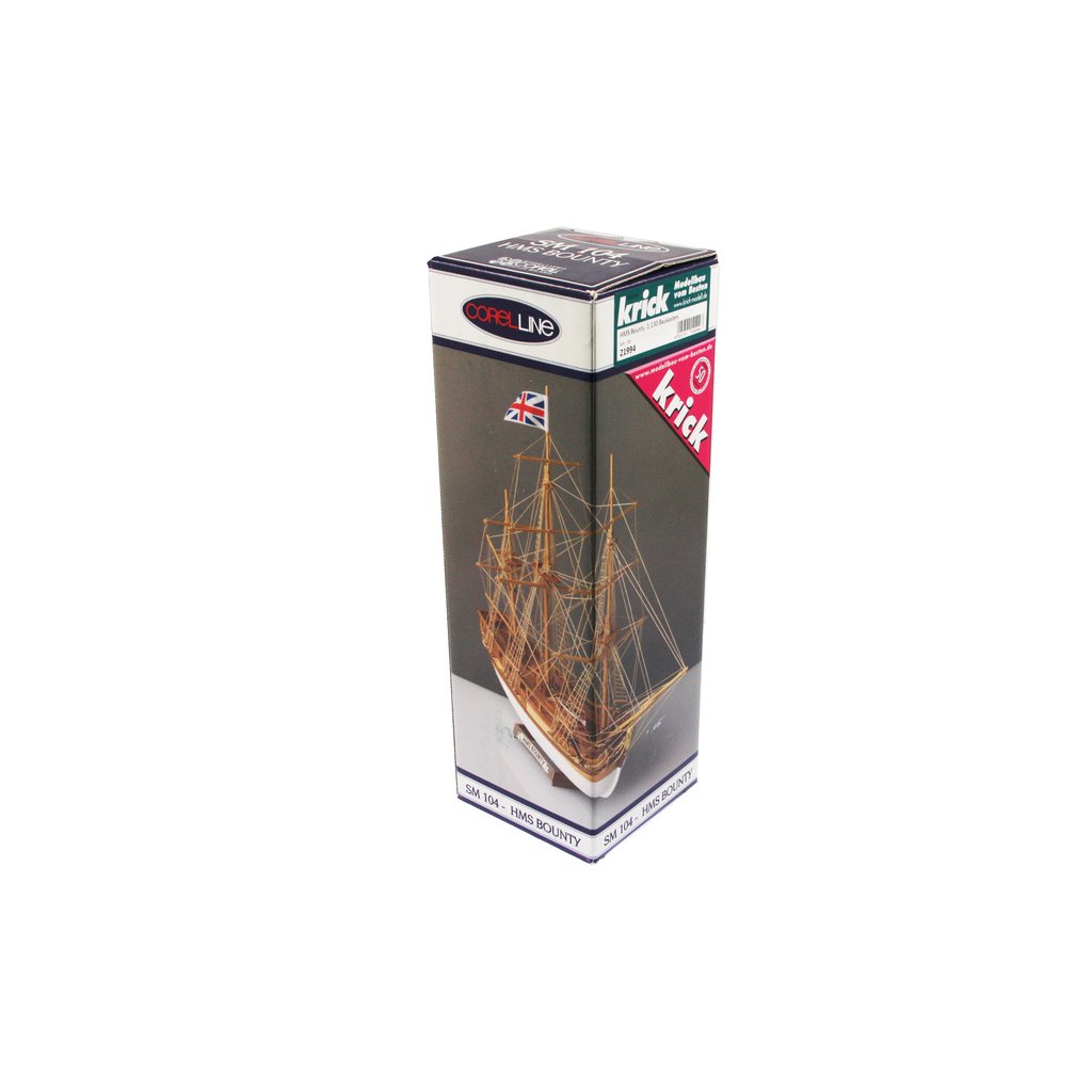 Stavebnice neplovoucího modelu COREL H.M.S. Bounty 1:130 z roku 1787. Jedna z nejznámějších lodí, díky vzpouře posádky proti kapitánovi. Ten byl s 18 věrnými členy vysazen na moře v záchranném člunu. V balení jsou dřevěné díly, lišty a množství kování, příslušenství, velké stavební plány v měřítku 1:1 a mnoho perspektivních výkresů usnadňují montáž. Určeno pro zkušenější modeláře.