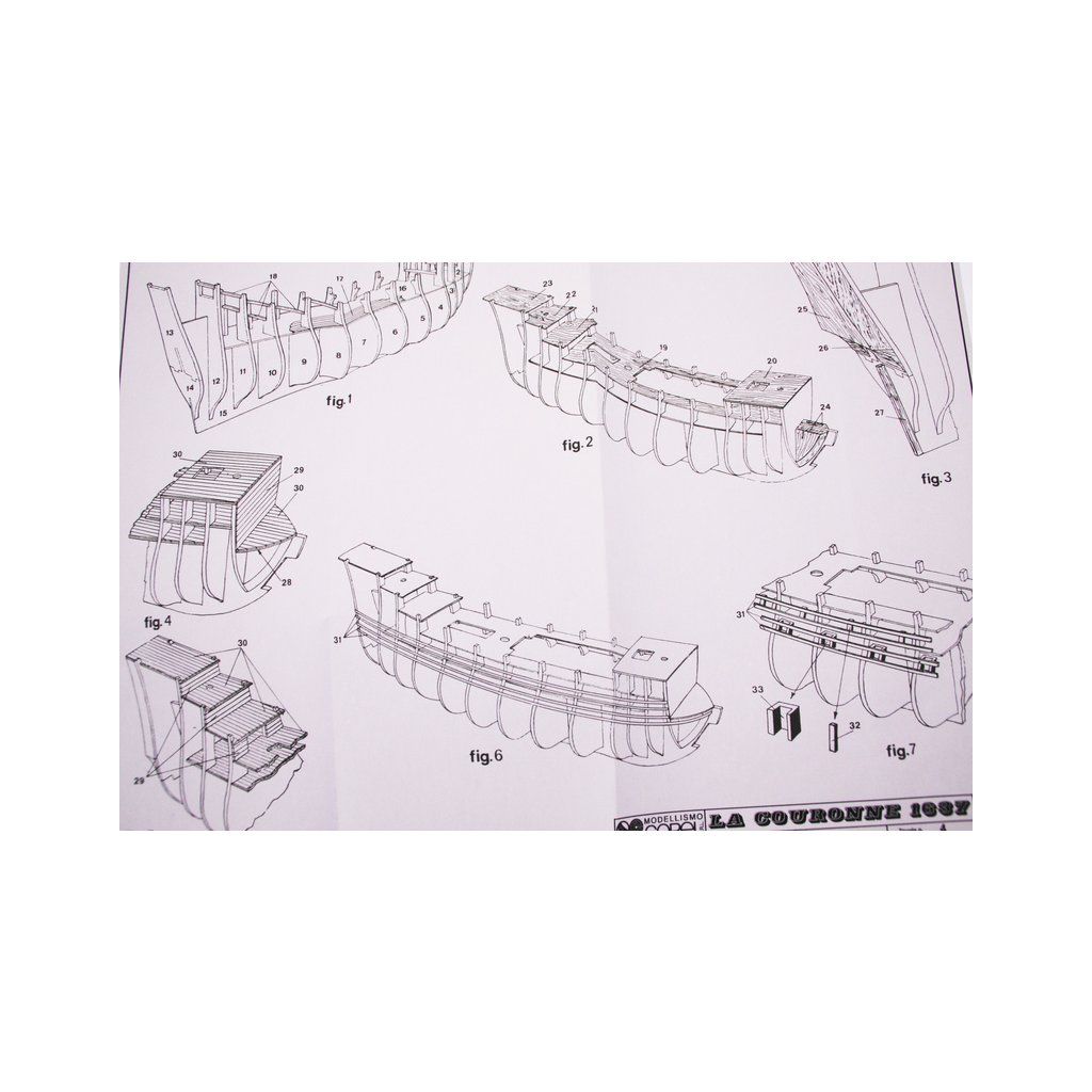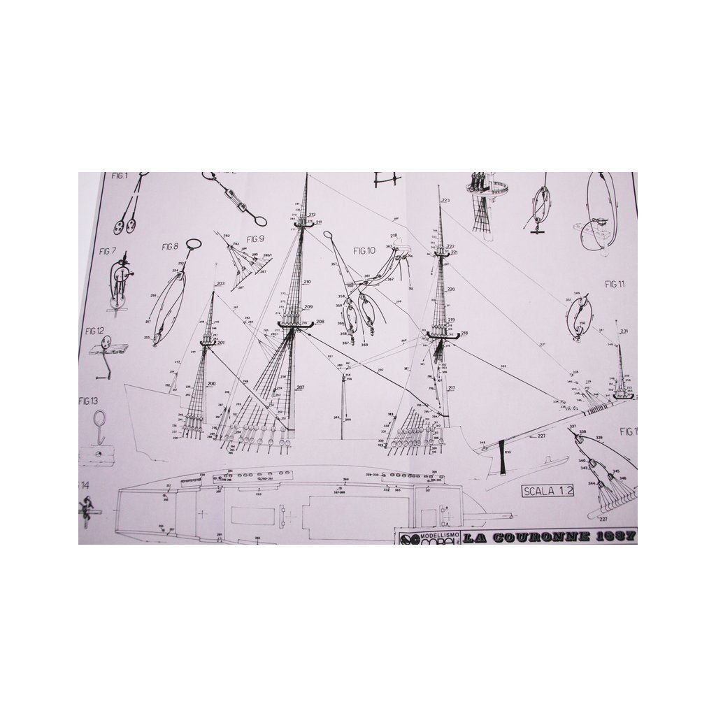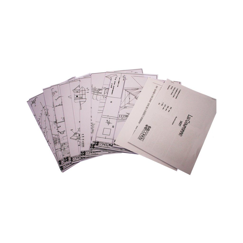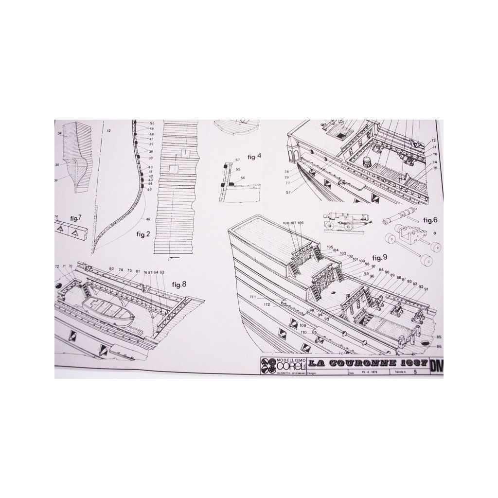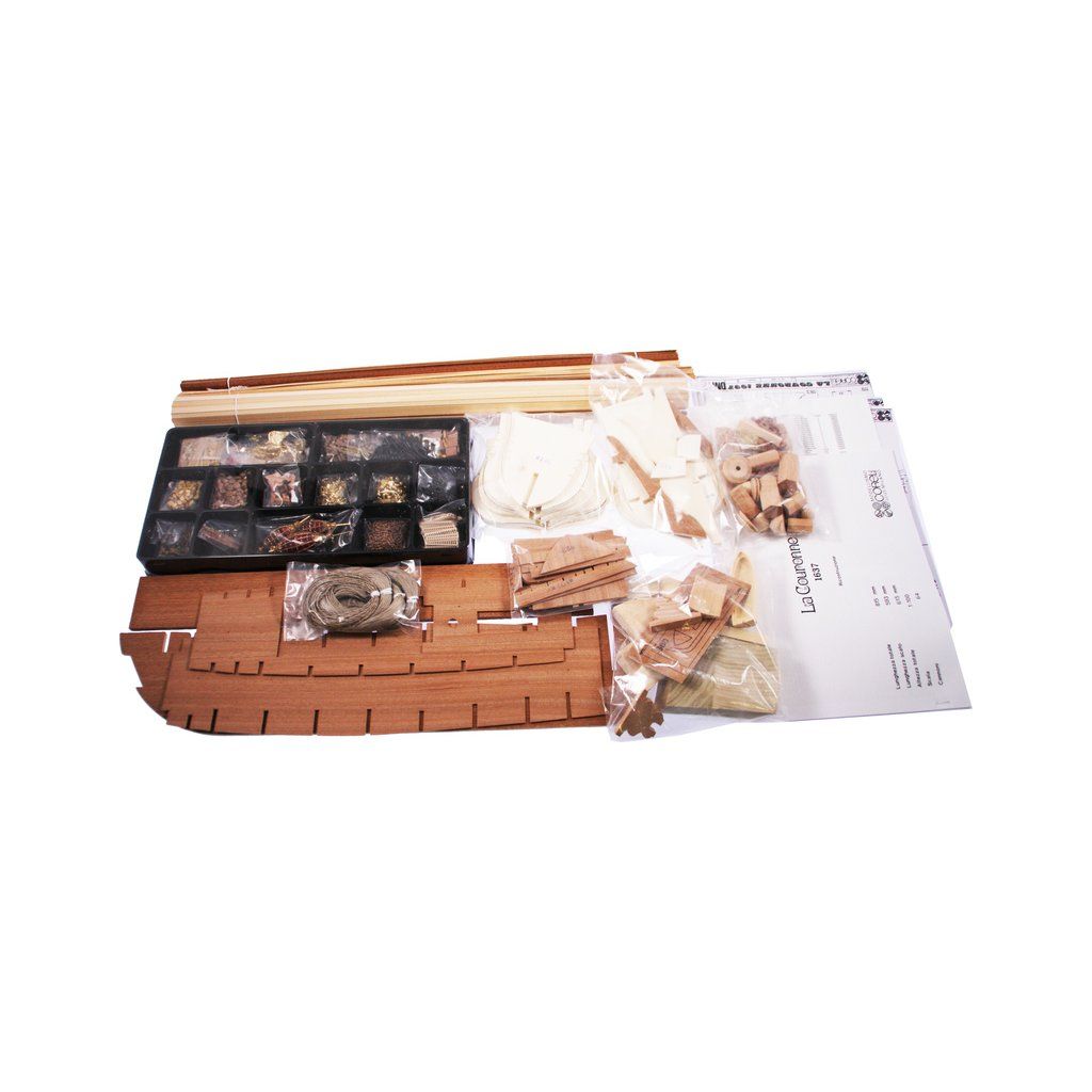 Stavebnice neplovoucího modelu COREL La Couronne v měřítku 1:100 z roku 1636. Kardinálu Richelieu se podařilo sjednotit konkurenční přístavní města Francie a připravit loďařský program jako přípravu na střet s Angličany a Španěly. Výsledkem byla velká loď s mohutnou výzbrojí 72 děl a až 600 mužů posádky. Přes obavy byla Couronne překvapivě dobře manévrovatelná. V balení jsou dřevěné díly, lišty a množství kování, příslušenství, velké stavební plány v měřítku 1: 1 a mnoho perspektivních výkresů usnadňují montáž. Určeno pro zkušené modeláře.