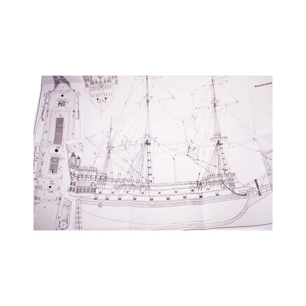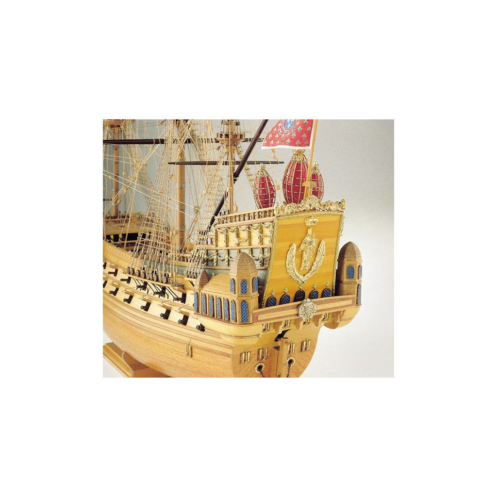 Rozsáhlá stavebnice velké neplovoucí makety historické lodi pro náročné modeláře. Krásná a velká loď La Couronne v měřítku 1:100 z roku 1636 má délku 805mm, proto jde zpracovat velmi podrobně. V plastovém blistru najdete ohromné množství maketových dřevěných i kovových prvků, zpracovaných do nejmenších detailů, které přímo použijete při stavbě. Řada výkresů v měříktu 1:1 vám umožní porovnávat vyráběné díly s výkresy a docílit tak vysoké přesnosti. Maketa je velmi pracná, není určena pro začátečníky.