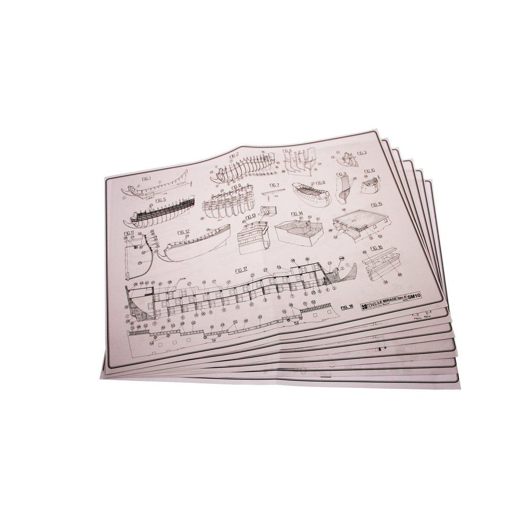 Set obsahuje kompletní sadu výkresové dokumentace modelu v měřítku 1:1 s postupem stavby, na výkrese jsou pečlivě označeny díly a je zde i seznam jednotlivých součástí modelu.