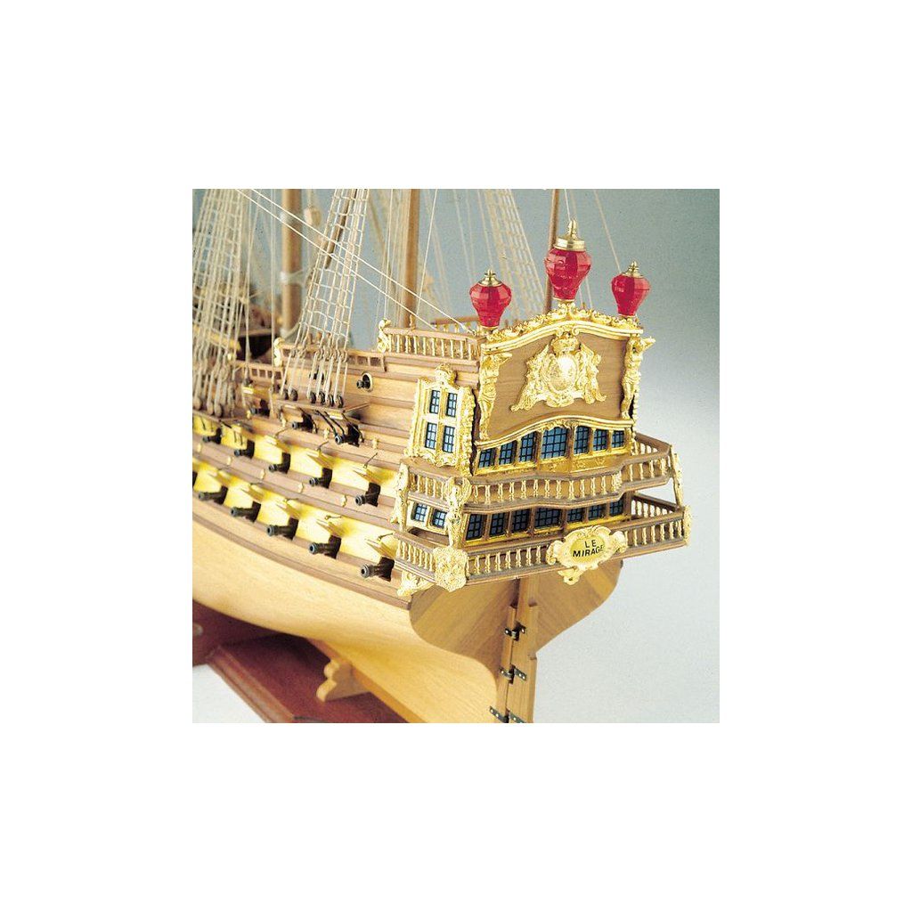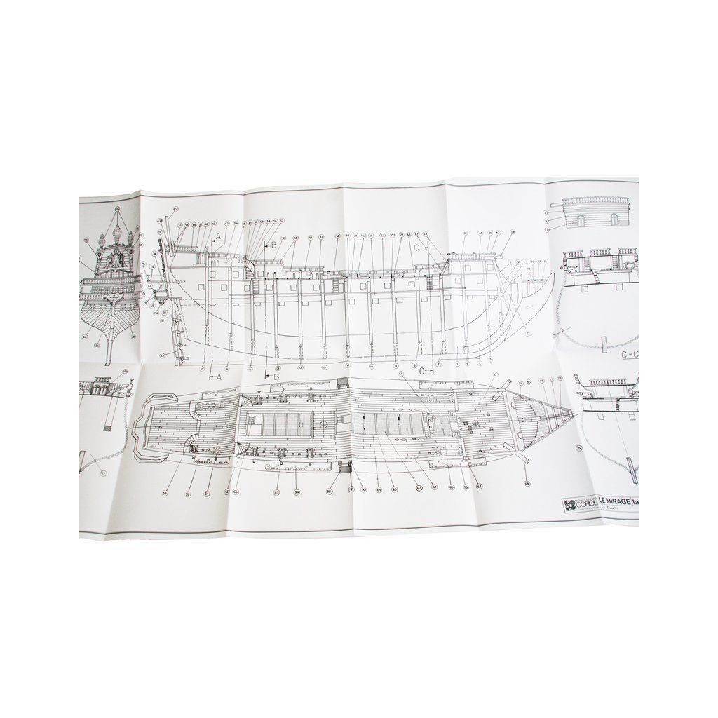 Stavebnice neplovoucího modelu COREL Le Mirage v měřítku 1:75. Model Le Mirage je rekonstrukcí válečné lodi první třídy s 84 děly, která byla v době Ludvíka XIV. krále Slunce ve francouzském námořnictvu ve službě.V balení jsou dřevěné díly, lišty a množství kování, příslušenství, plány atd.
