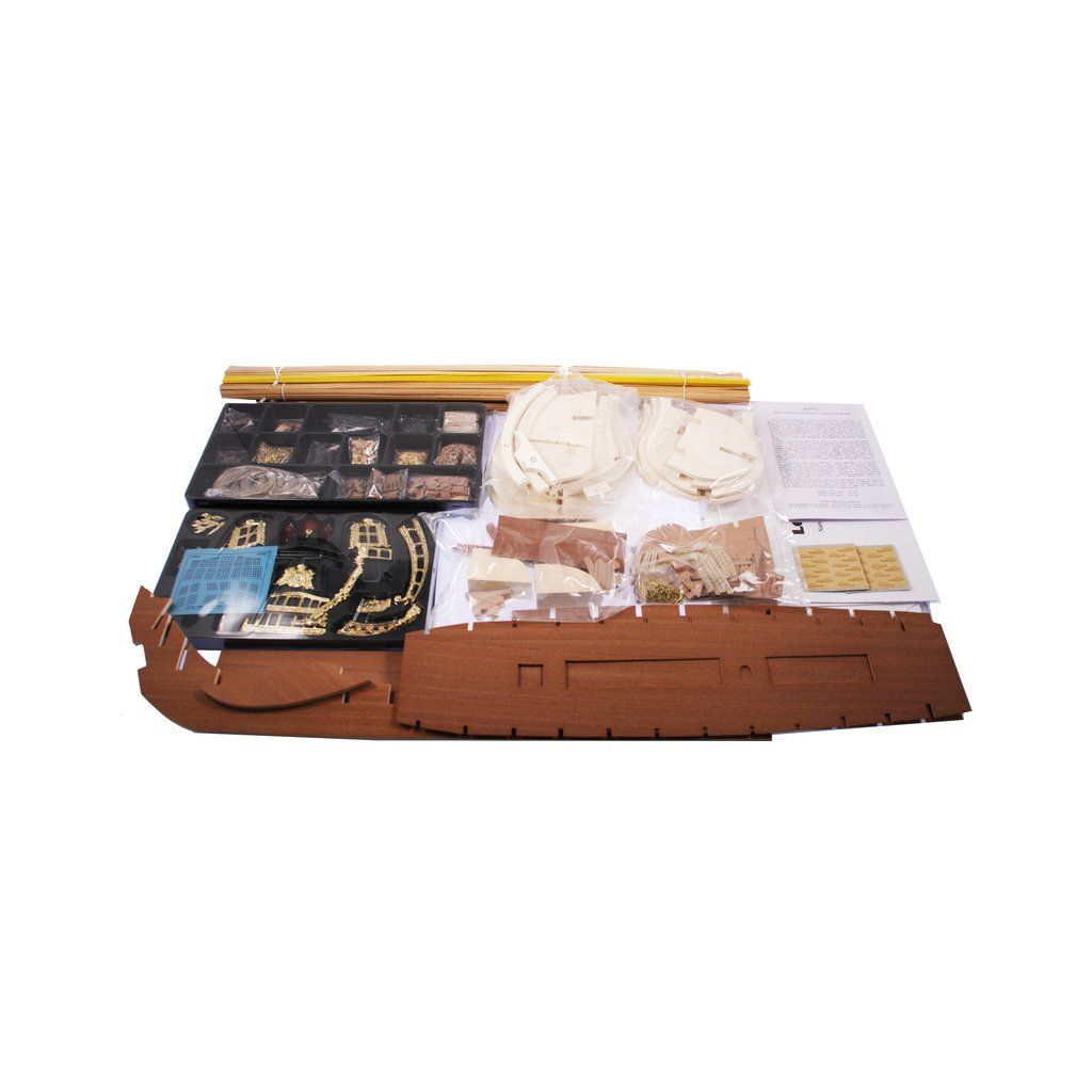 Vedle své dobré výzbroje byla loď charakteristická velkou rozmanitostí ozdob, která měla ve své době velký význam. Stavební příručka a seznam součástí v 4 jazycích jsou podrobné a srozumitelné. Všechny součásti soupravy jsou vyrobeny ve vynikající kvalitě. Rám a kýl, stejně jako ostatní dřevěné díly jsou řezány, montážní sada obsahuje zlacené dekorace.