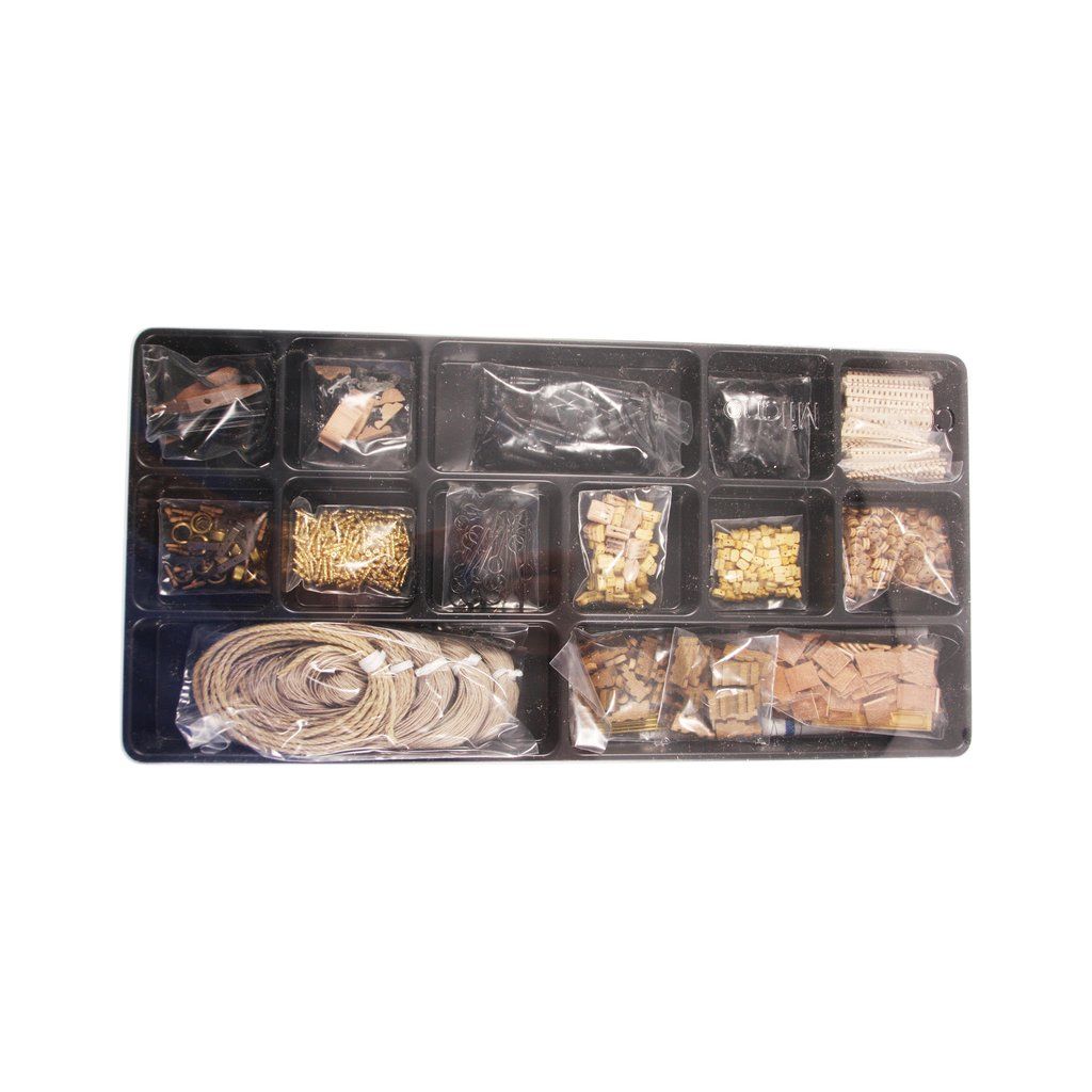 Balení obsahuje sadu překližkových dílů, sadu dřevěných lišt o různém průřezu, blistr s drobnými díly, díly z mosazi, sadu výkresů a vícejazyčný manuál.