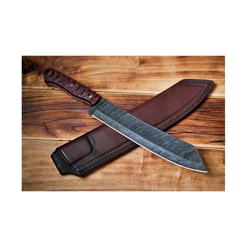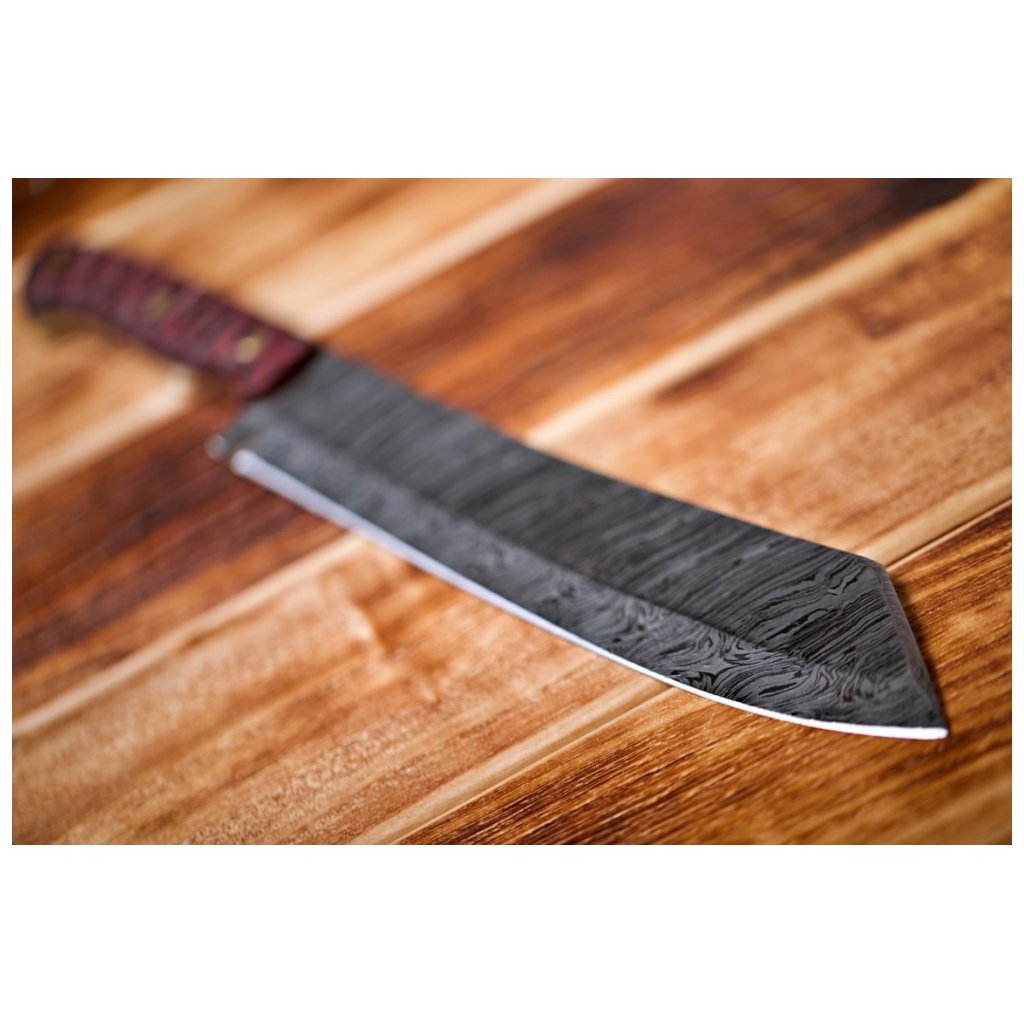 Houževnatost a odolnost vůči opotřebení je u tohoto modelu prioritou. Jelikož damašková uhlíková ocel není nerezová, vyžaduje pravidelnou údržbu (olejování a udržování v suchu), čímž se minimalizuje riziko oxidace. Mačetu využijete jak při pracích venku – například při úpravě zahrady a prosvětlování husté vegetace, tak jako součást myslivecké či outdoorové výbavy při přípravě tábořiště.