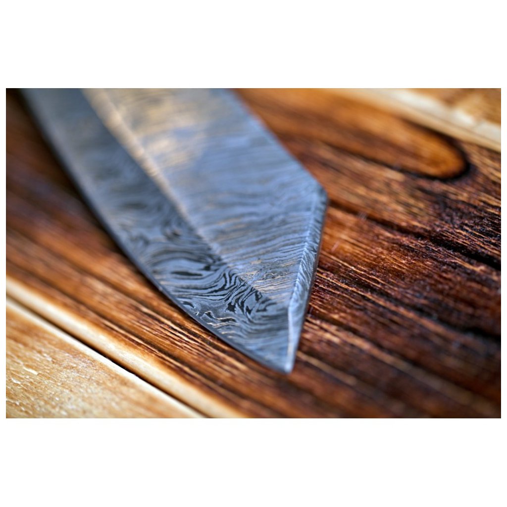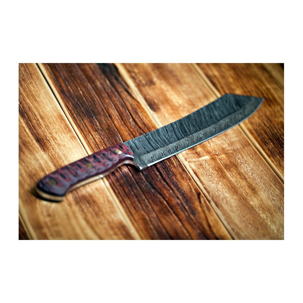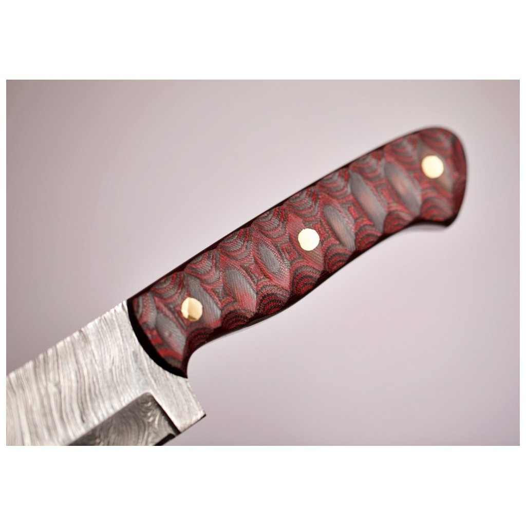Ručně kovaná a precizně zpracovaná mačeta z damaškové uhlíkové oceli ve full tang konstrukci. Odolná rukojeť z mikarty zajišťuje bezpečný úchop i v náročných podmínkách. Kresba vytvořená na povrchu čepele je jedinečná a vyniká hloubkou profilu jednotlivých vrstev.