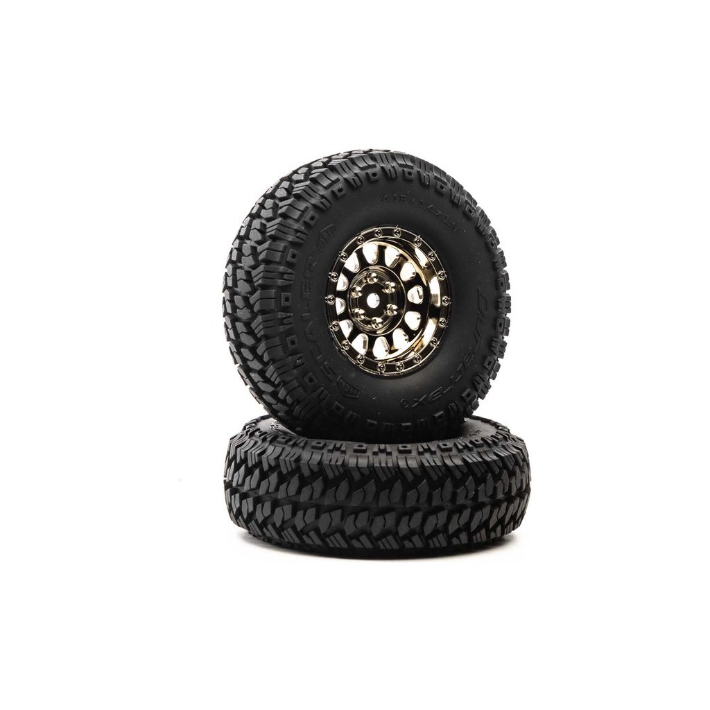 Kompletní kola Duratrax 1,9" Class 1 Scaler CR C3 chrom pro RC modely aut. Rozměr disku ⌀ 53x25 mm, celkový rozměr ⌀108x37 mm. Unašeč je šestihran 12 mm s offsetem 12 mm. Disk je provedení chrom, tvrdost směsi pneumatiky C3 - super měkká směs.