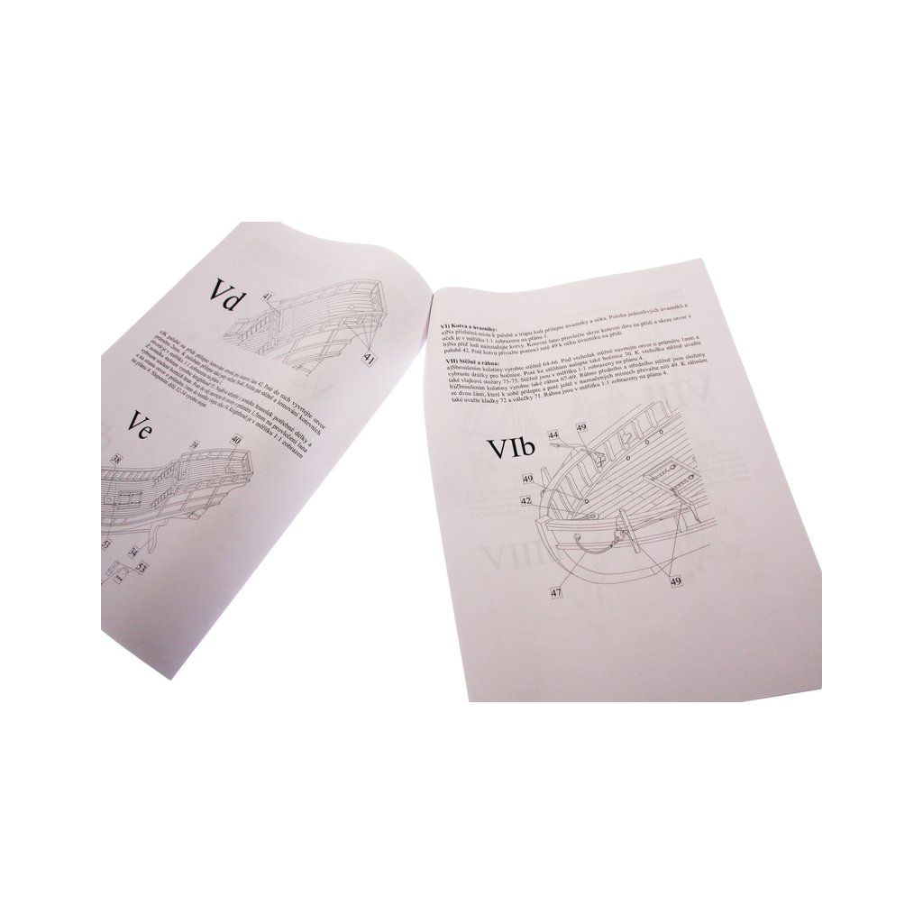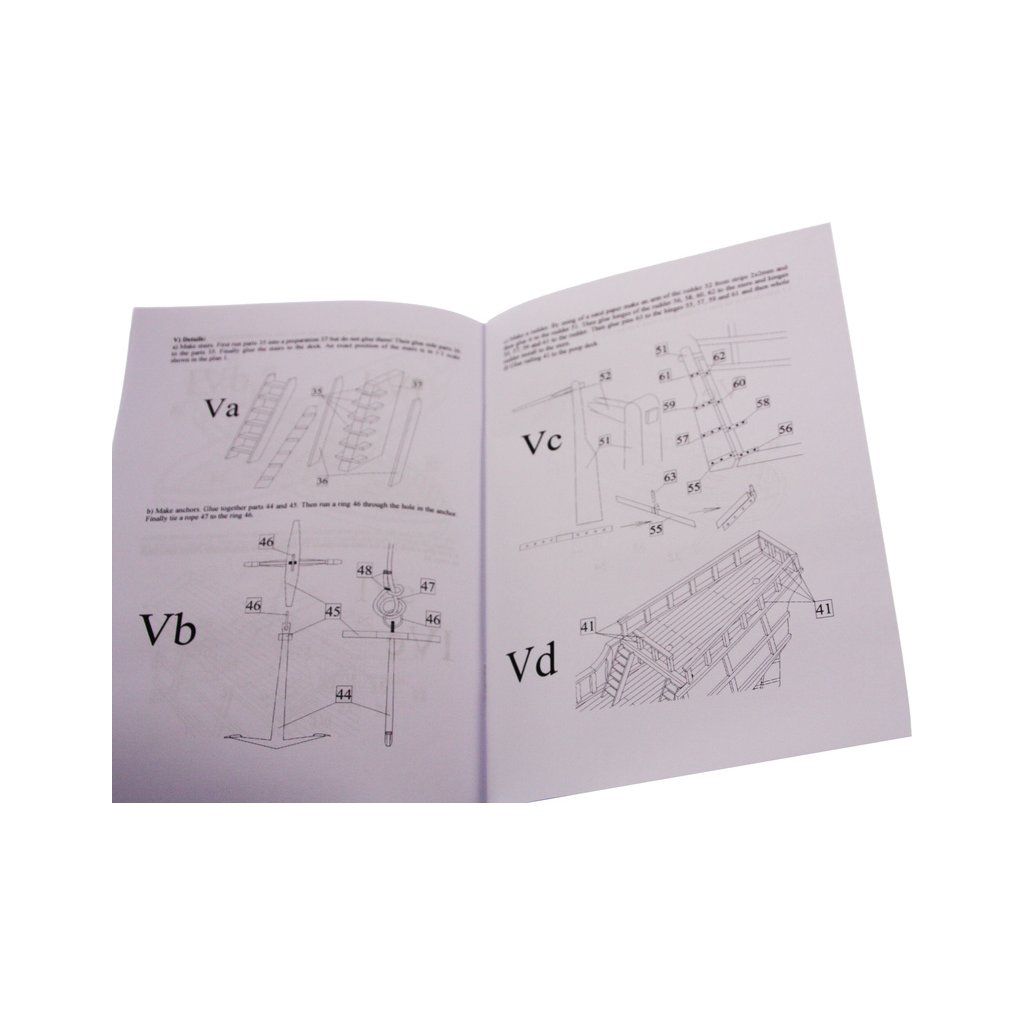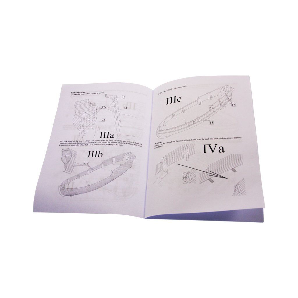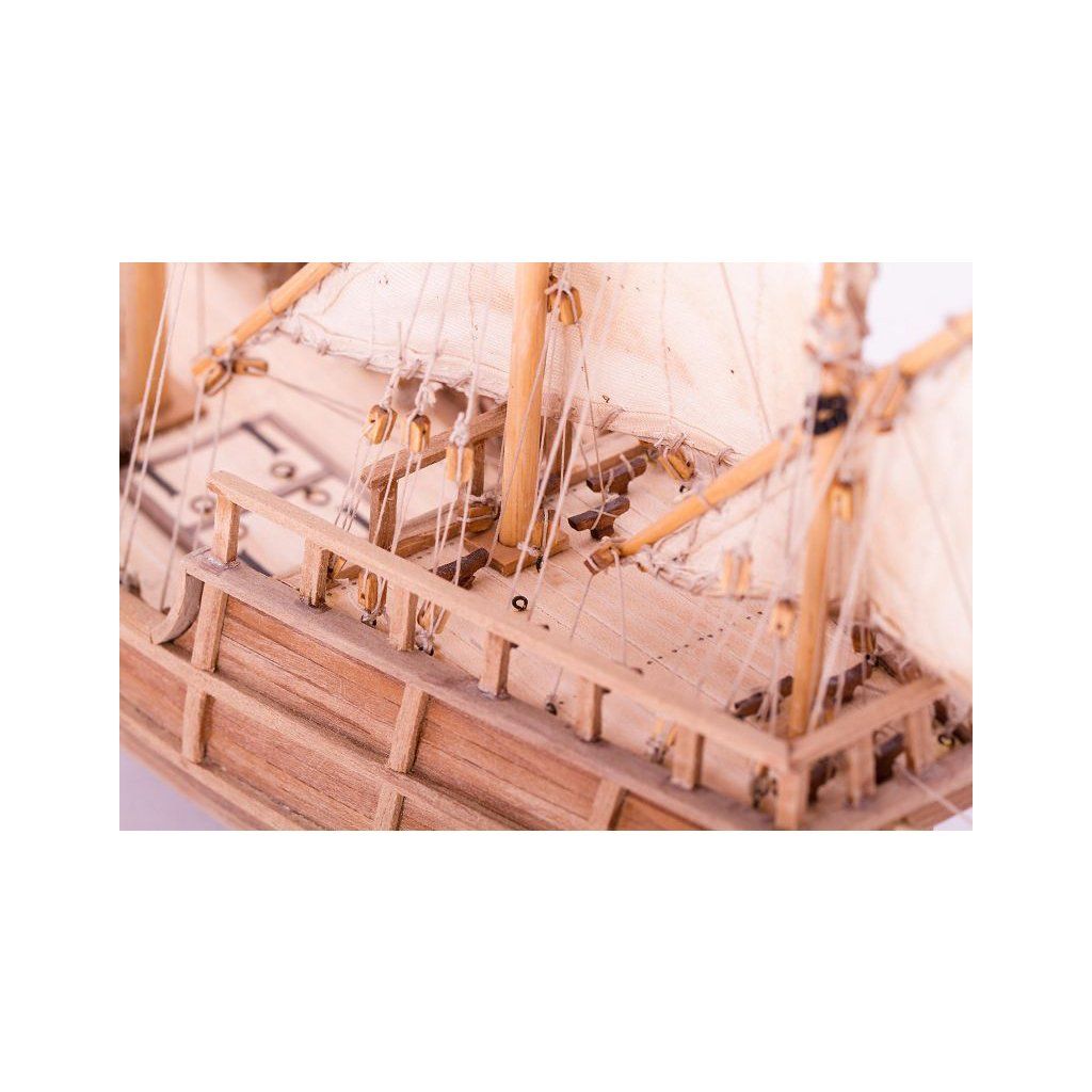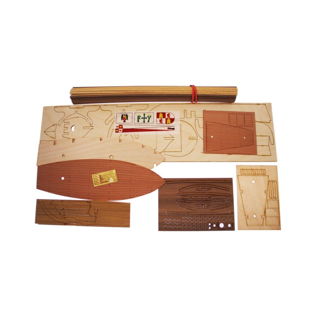 V balení stavebnice makety je sestava laserem vyřezaných desek z překližky a kompletní dřevěné součásti, mosazné součásti, prkna a lišty pro palubu, předtištěné vlajky, látku pro plachtu a dostatek lanoví na celou loď. Sestavení pomáhá podrobný plán stavby a přesné pokyny, manuál EN, FR, SP, CZ.