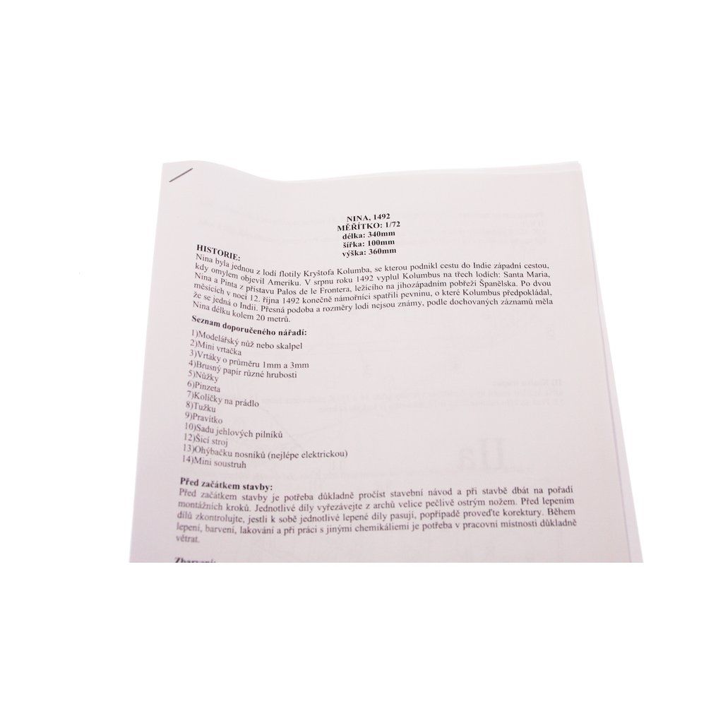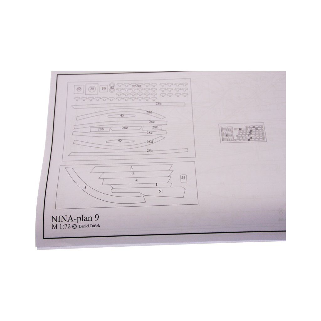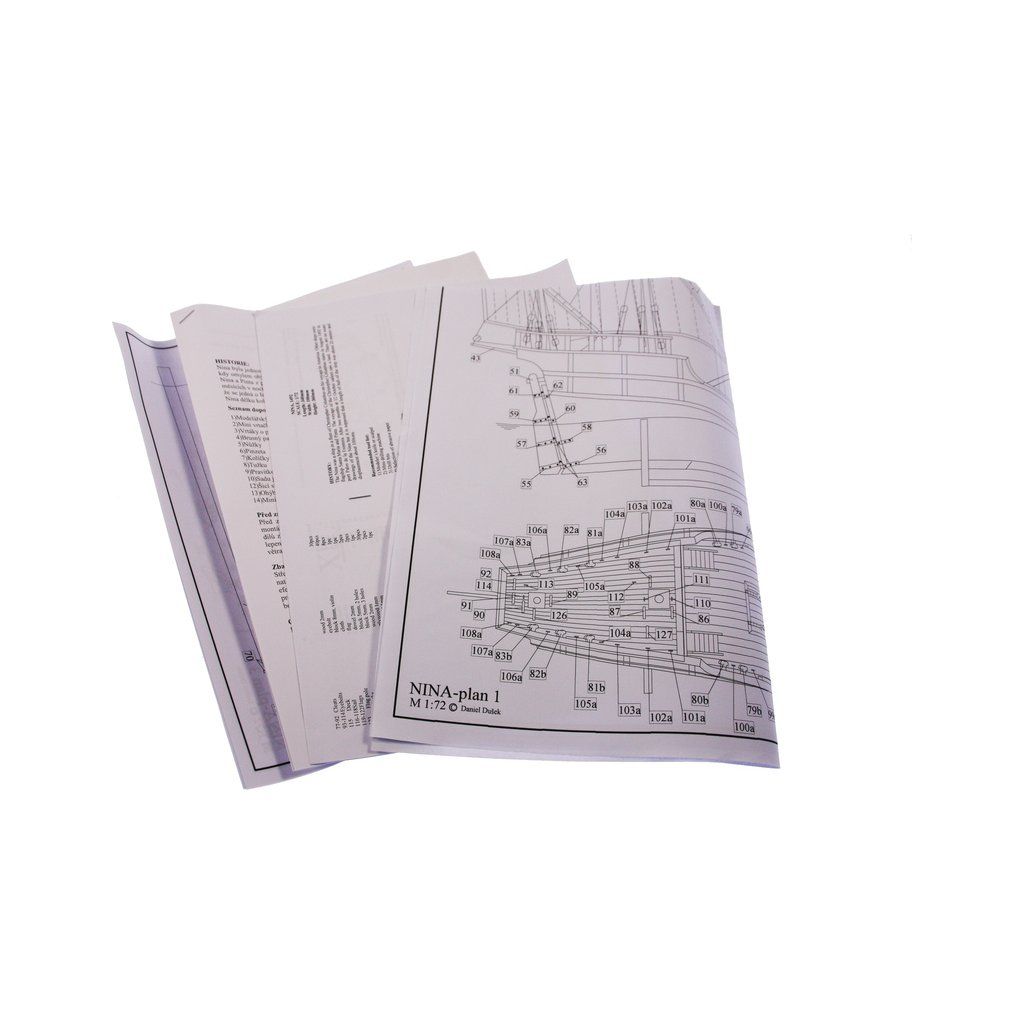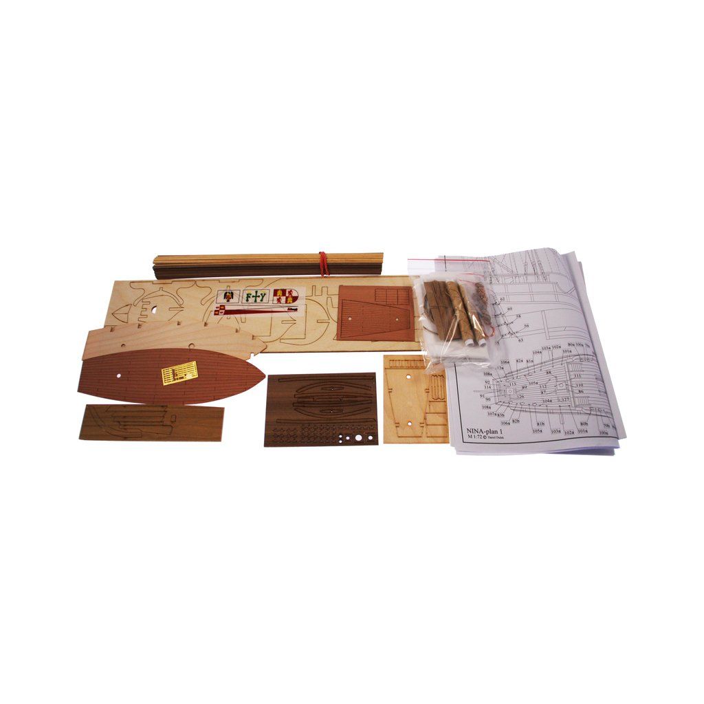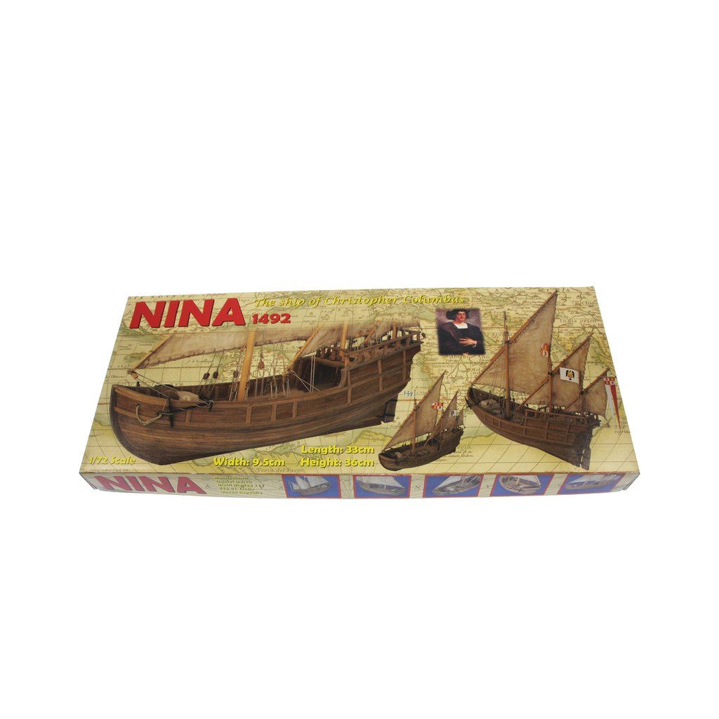 Stavebnice makety lodi Nina z roku 1492 v měřítku 1:72 z flotily Kryštofa Kolumba. Délka modelu lodi je 360mm, stavba převážně ze dřeva s drobnými doplňky, součástí je stavební plán a pokyny s mnoha podrobnými obrázky.