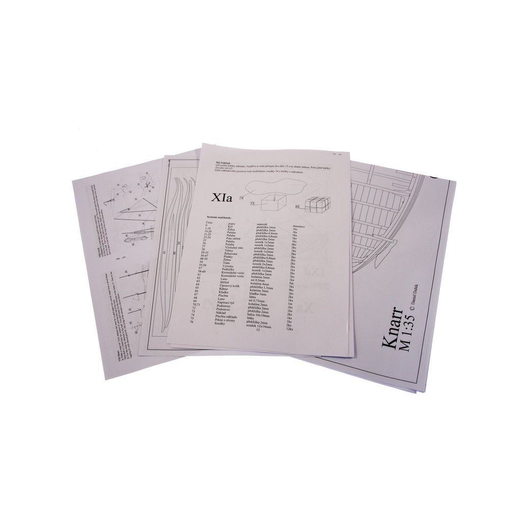 Set obsahuje kompletní sadu výkresové dokumentace s postupem stavby, na výkrese jsou pečlivě označeny díly a je zde i seznam jednotlivých součástí modelu.