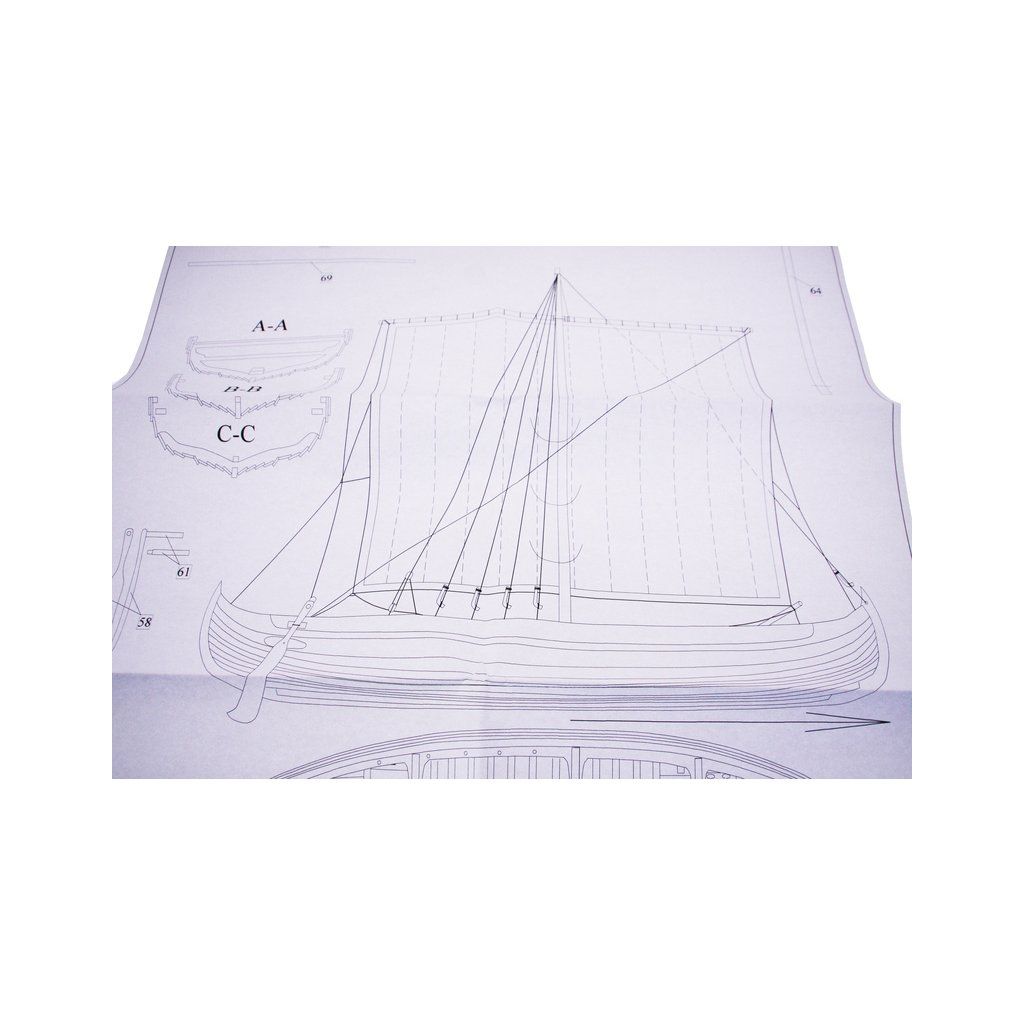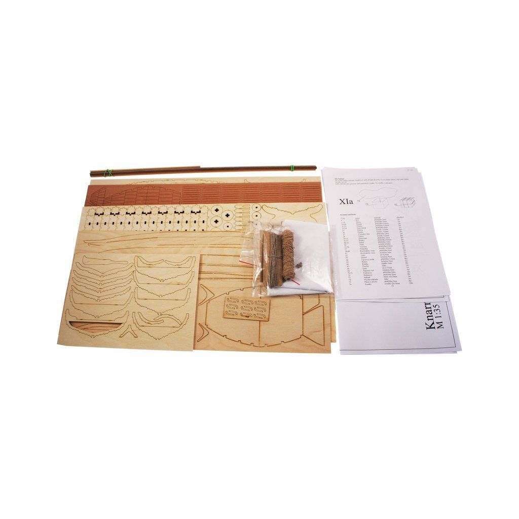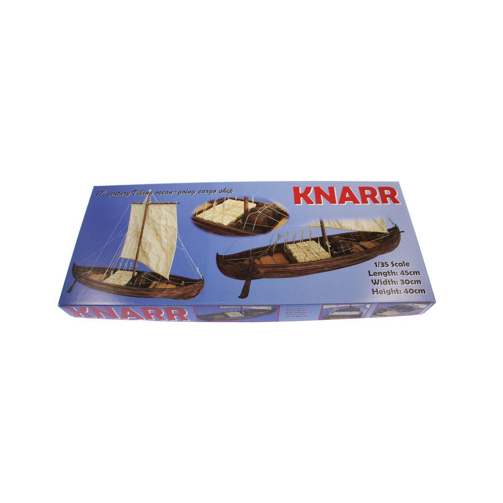 Stavebnice makety Vikingské lodi Knarr z roku přibližně 1030 v měřítku 1:72. Délka modelu lodi je 220mm, stavba převážně ze dřeva s drobnými doplňky, součástí je stavební plán a pokyny s mnoha podrobnými obrázky.