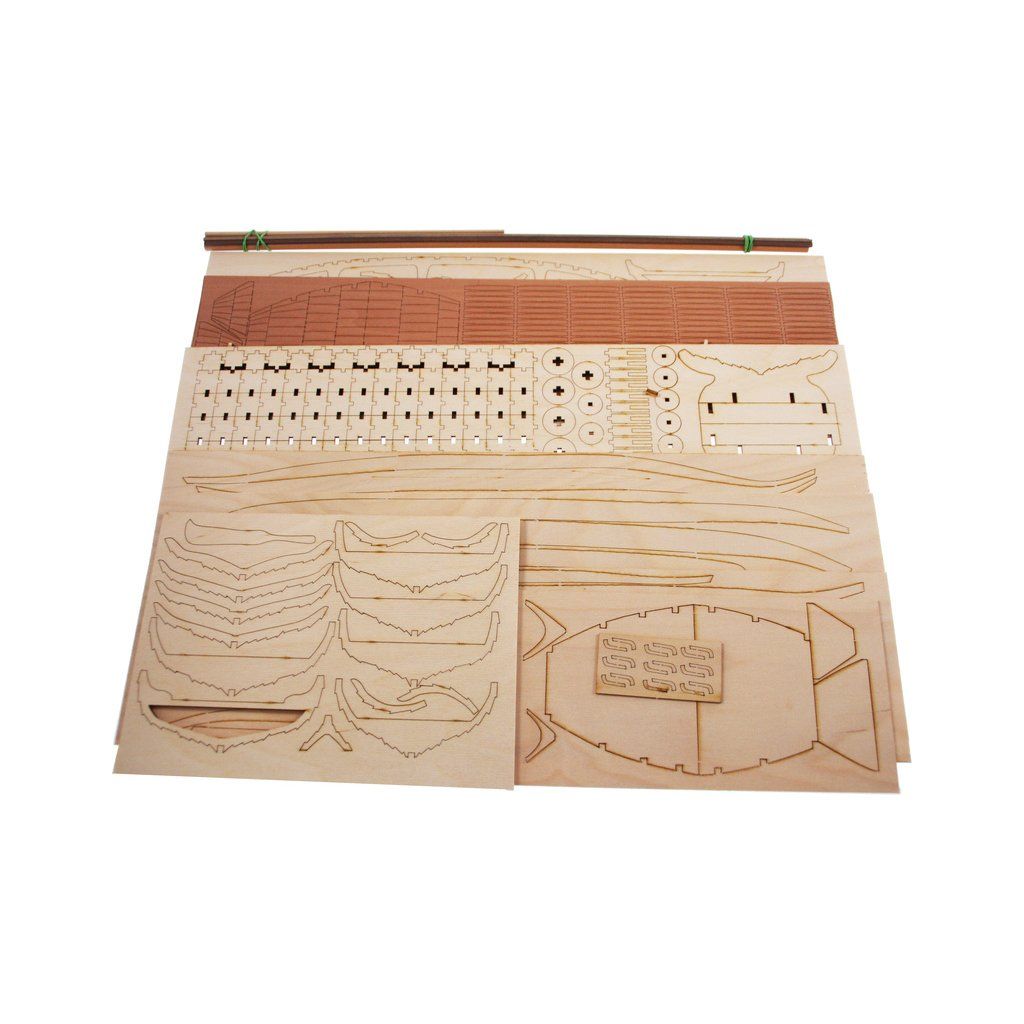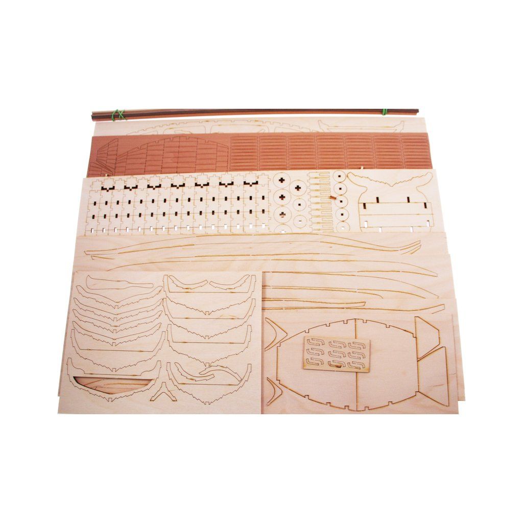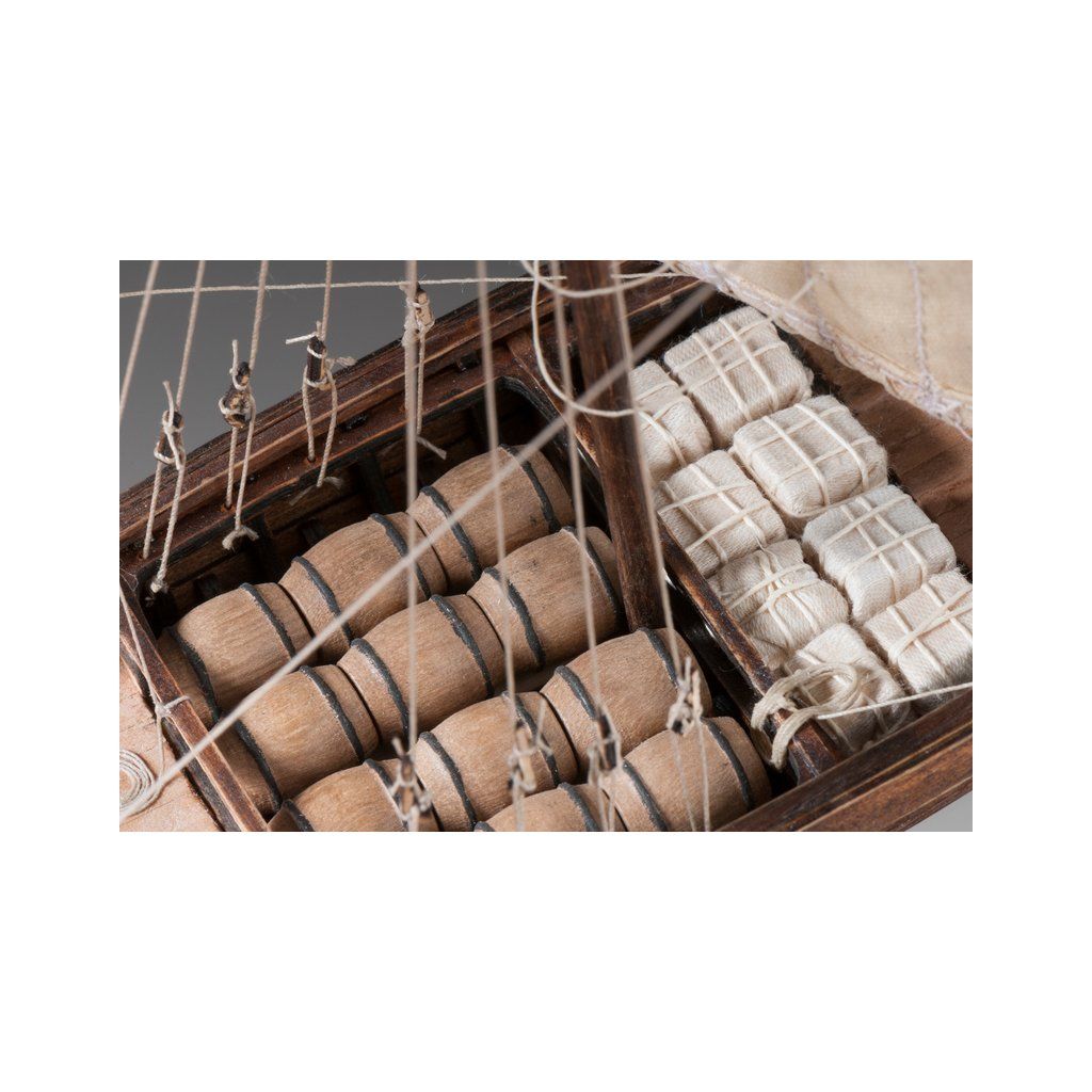 V balení stavebnice makety je sestava laserem vyřezaných desek z překližky a kompletní dřevěné součásti, mosazné součásti, prkna a lišty pro palubu, předtištěné vlajky, látku pro plachtu a dostatek lanoví na celou loď. Sestavení pomáhá podrobný plán stavby a přesné pokyny, manuál EN, CZ.