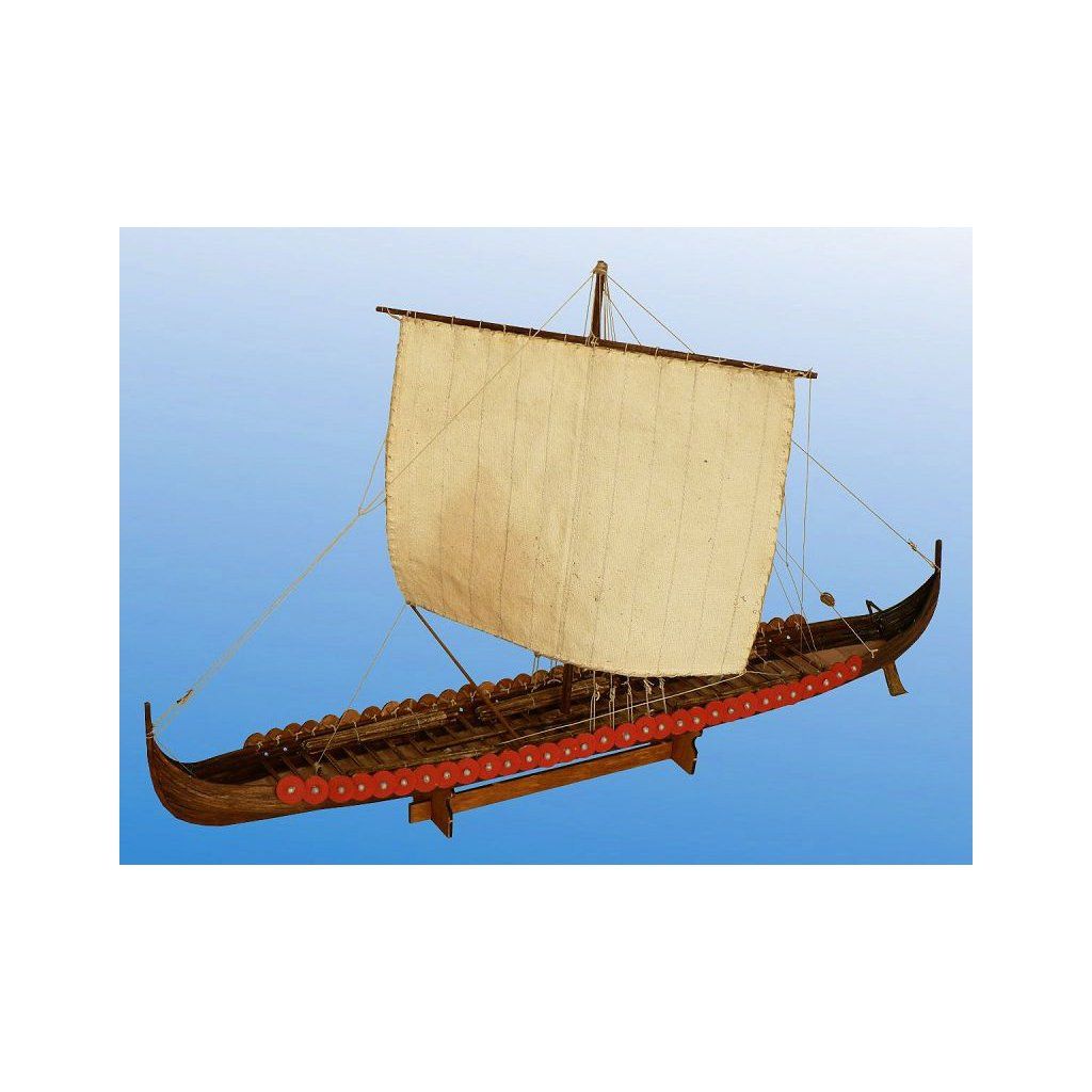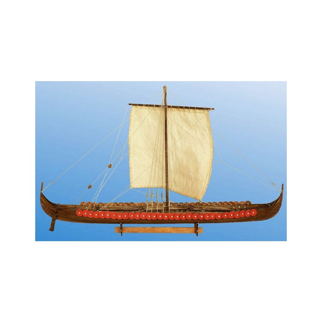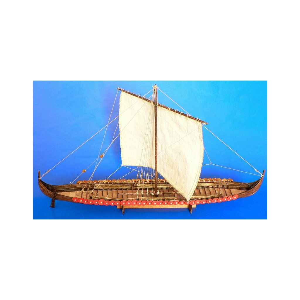 Stavebnice makety válečné Vikingské prodloužené lodi z roku cca 1060 v měřítku 1:72. Délka modelu lodi je 390 mm, stavba převážně ze dřeva s drobnými doplňky, součástí je stavební plán a pokyny s mnoha podrobnými obrázky.