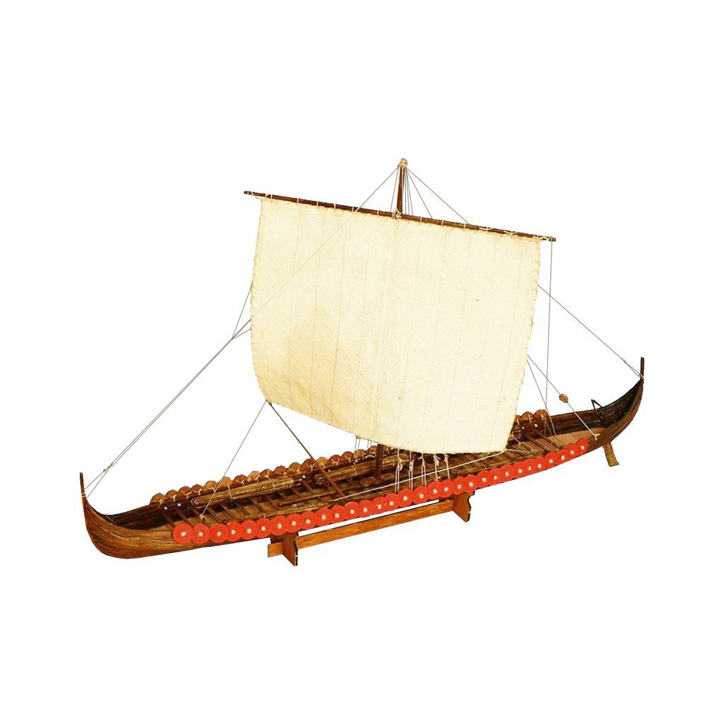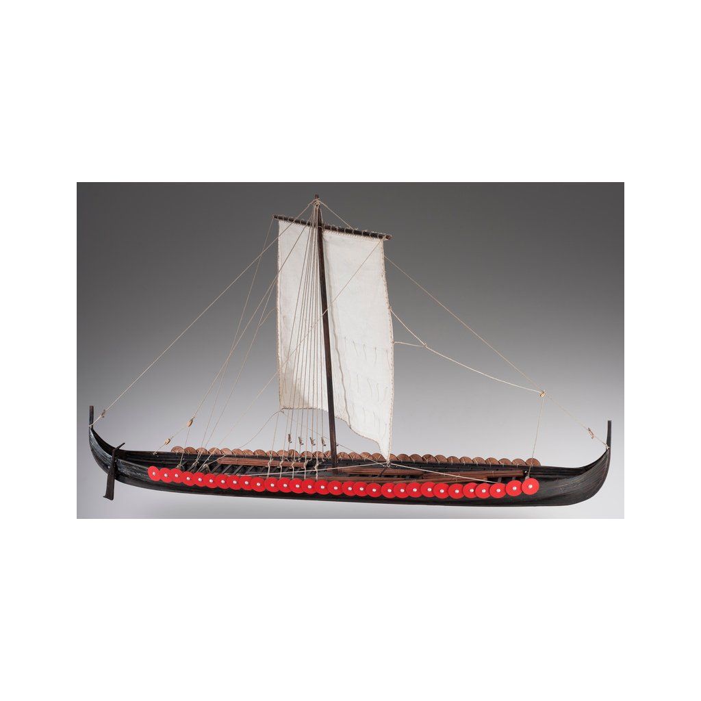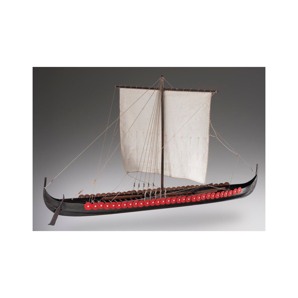Stavebnice makety válečné Vikingské prodloužené lodi z roku cca 1060 v měřítku 1:72. Délka modelu lodi je 390 mm, stavba převážně ze dřeva s drobnými doplňky, součástí je stavební plán a pokyny s mnoha podrobnými obrázky.